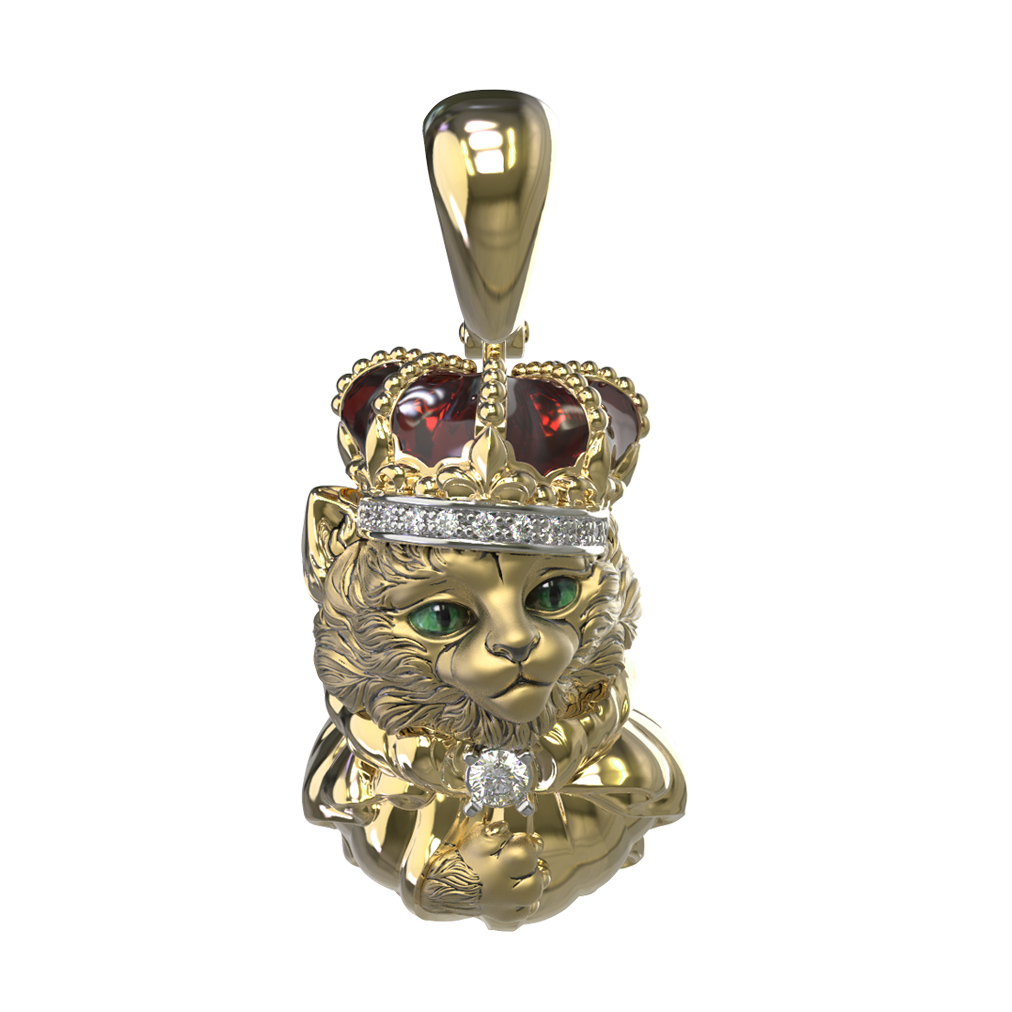 Оригинальная подвеска из коллекции De luxe Premium — Коты персонажи станет ярким акцентом вашего образа, подчеркивая статус и индивидуальность владельца. Это ювелирное украшение выполнено из лимонного золота 585 пробы, чей теплый благородный оттенок идеально дополняет сложный авторский дизайн. В центре композиции находится детально проработанная фигурка кота, воплощающая в себе эстетику роскоши и иронии. Мастера уделили особое внимание фактуре и выразительности образа, сделав аксессуар настоящим произведением ювелирного искусства.
