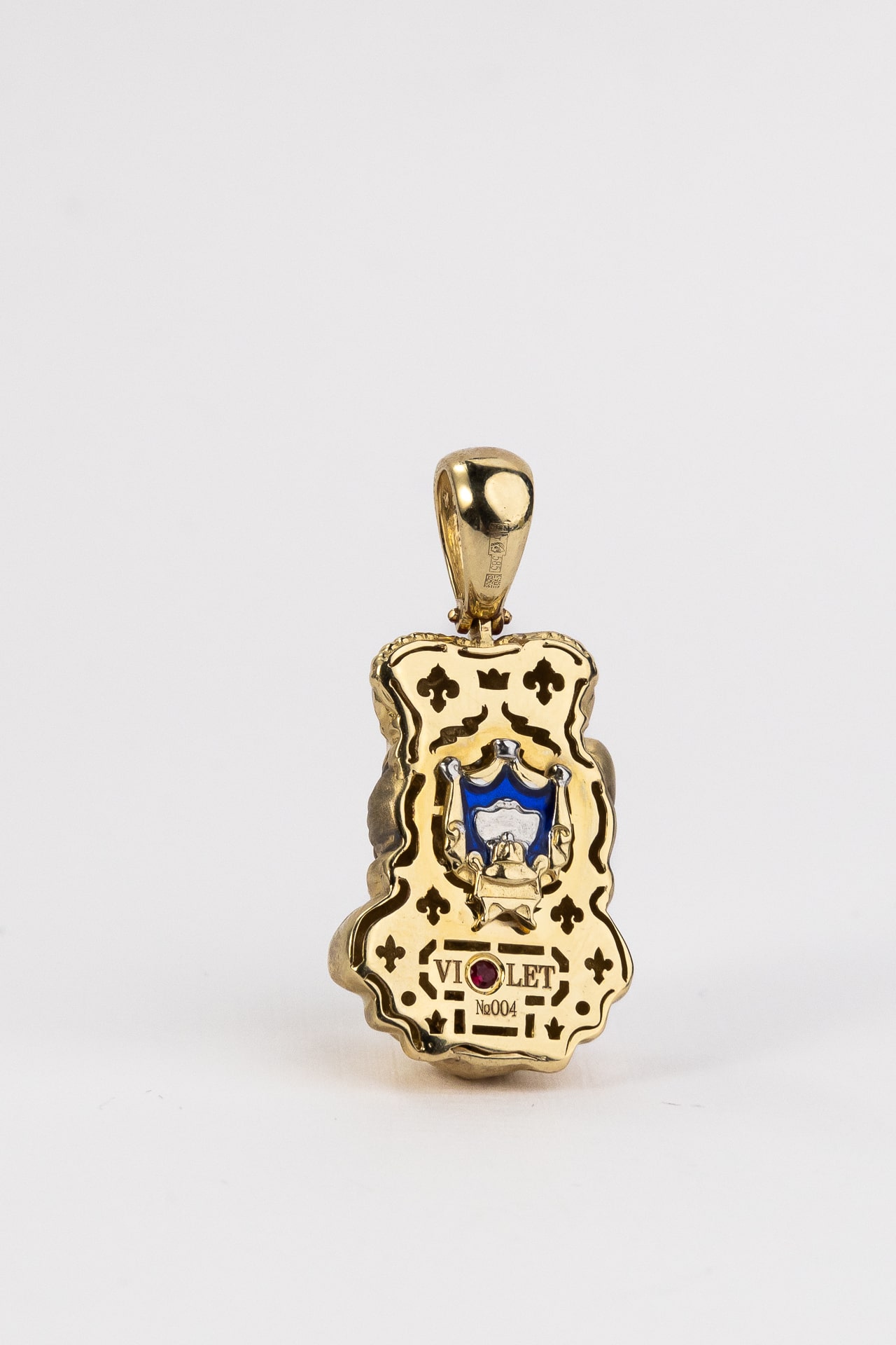 Подвеска из лимонного золота c эмалью, бриллиантами и рубином