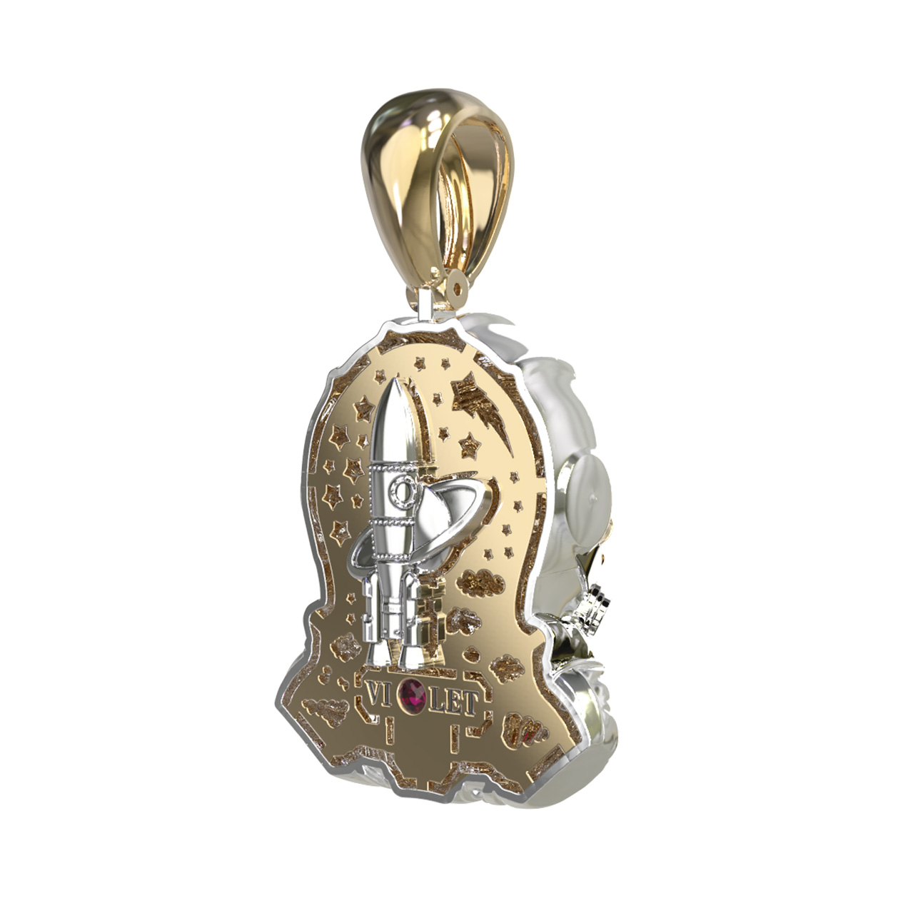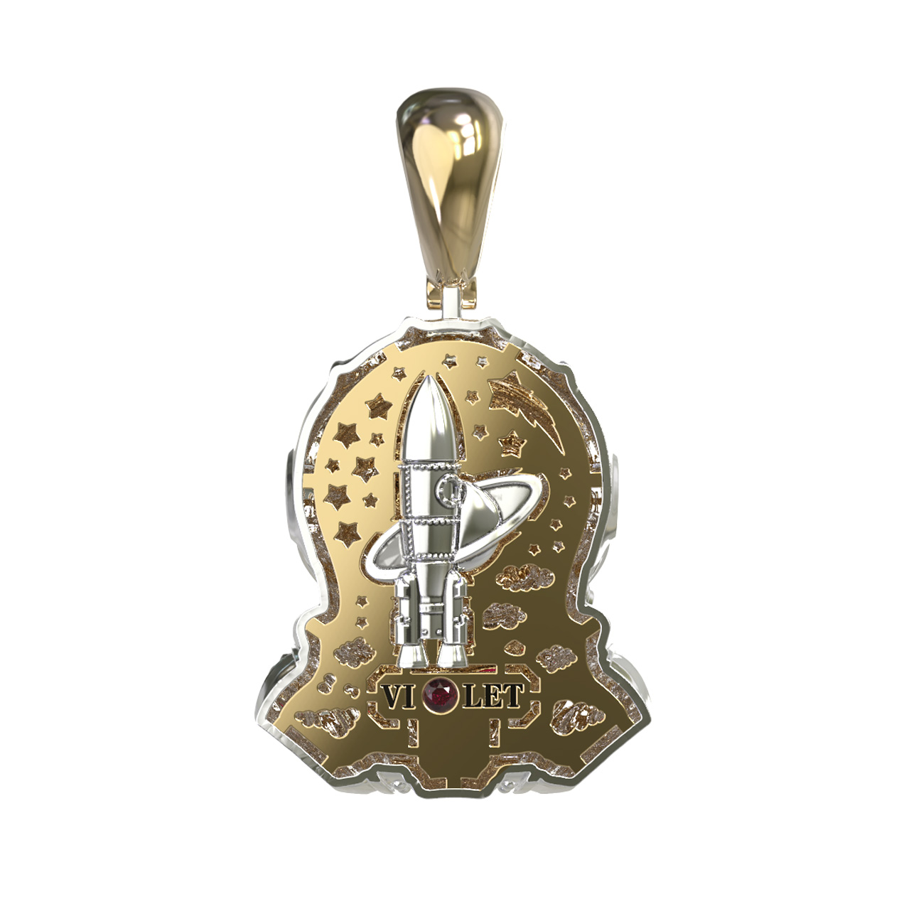 Подвеска из лимонного золота c эмалью, бриллиантами и рубином