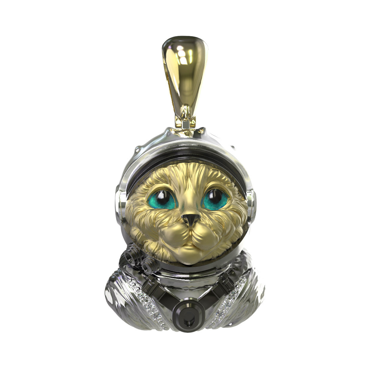 Мужская подвеска из лимонного золота 585 пробы из коллекции De luxe Premium — Коты персонажи станет ярким акцентом вашего стиля. Оригинальный дизайн в виде кота-космонавта демонстрирует смелость и нестандартный подход к выбору ювелирных украшений. Мастера детально проработали образ, используя сочетание драгоценных материалов для создания по-настоящему эффектного аксессуара.