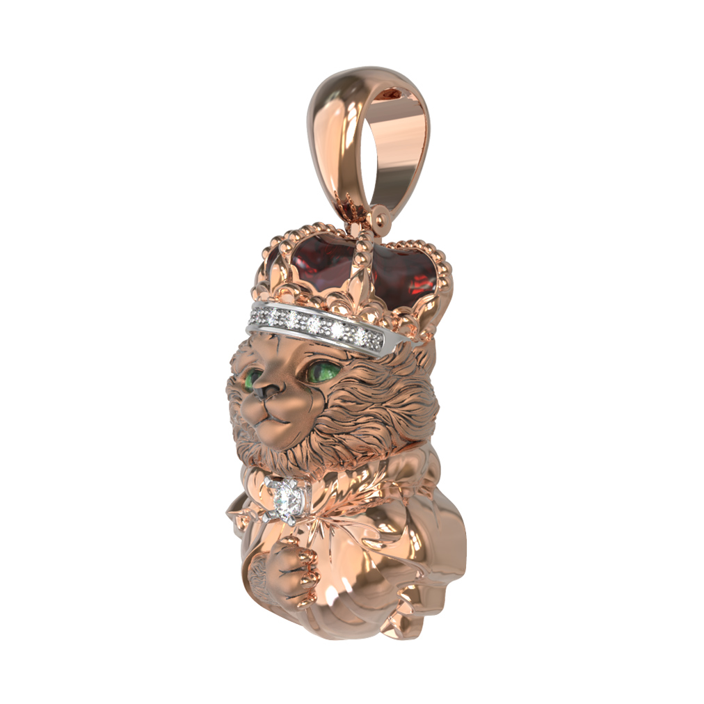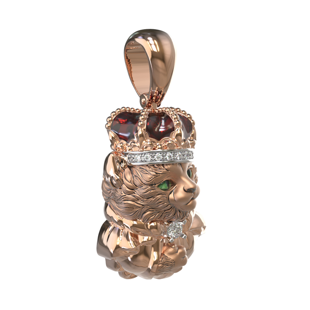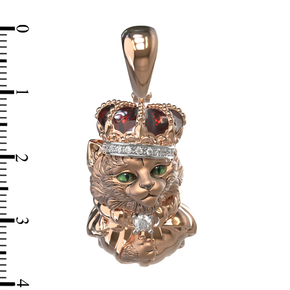 Представляем вашему вниманию изысканную подвеску из коллекции De luxe Premium — Коты персонажи, выполненную в виде грациозного кота в короне. Это ювелирное украшение станет ярким акцентом в образе, сочетая в себе мастерство исполнения и благородство материалов. Изделие изготовлено из красного золота 585 пробы, которое придает ему теплый, притягательный оттенок.