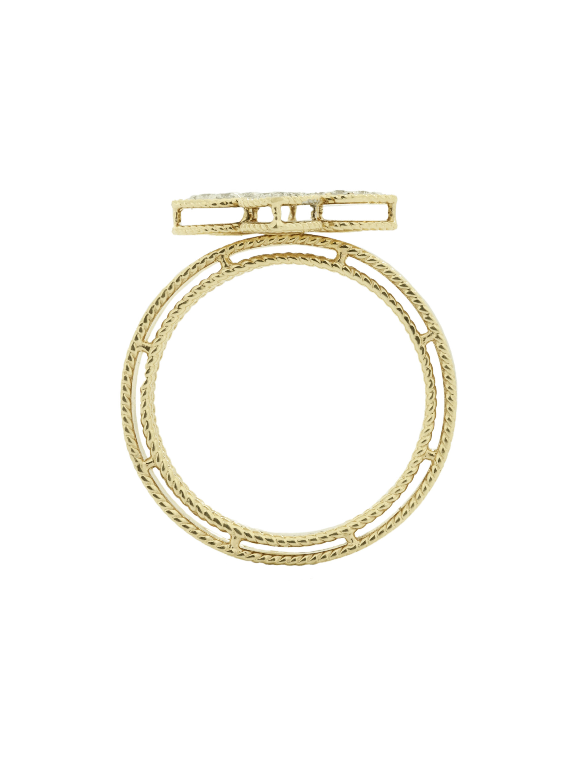 Изысканное кольцо из лимонного золота 585 пробы — это воплощение утонченности и высокого ювелирного искусства. Центральным элементом украшения выступает изящный дизайн в форме клевера, который придает изделию особое очарование и символический смысл. Благородный блеск лимонного золота гармонично дополнен инкрустацией из 16 сверкающих бриллиантов круглой формы. Белый цвет вставок эффектно контрастирует с теплым оттенком драгоценного металла, создавая выразительную и статутуную композицию.