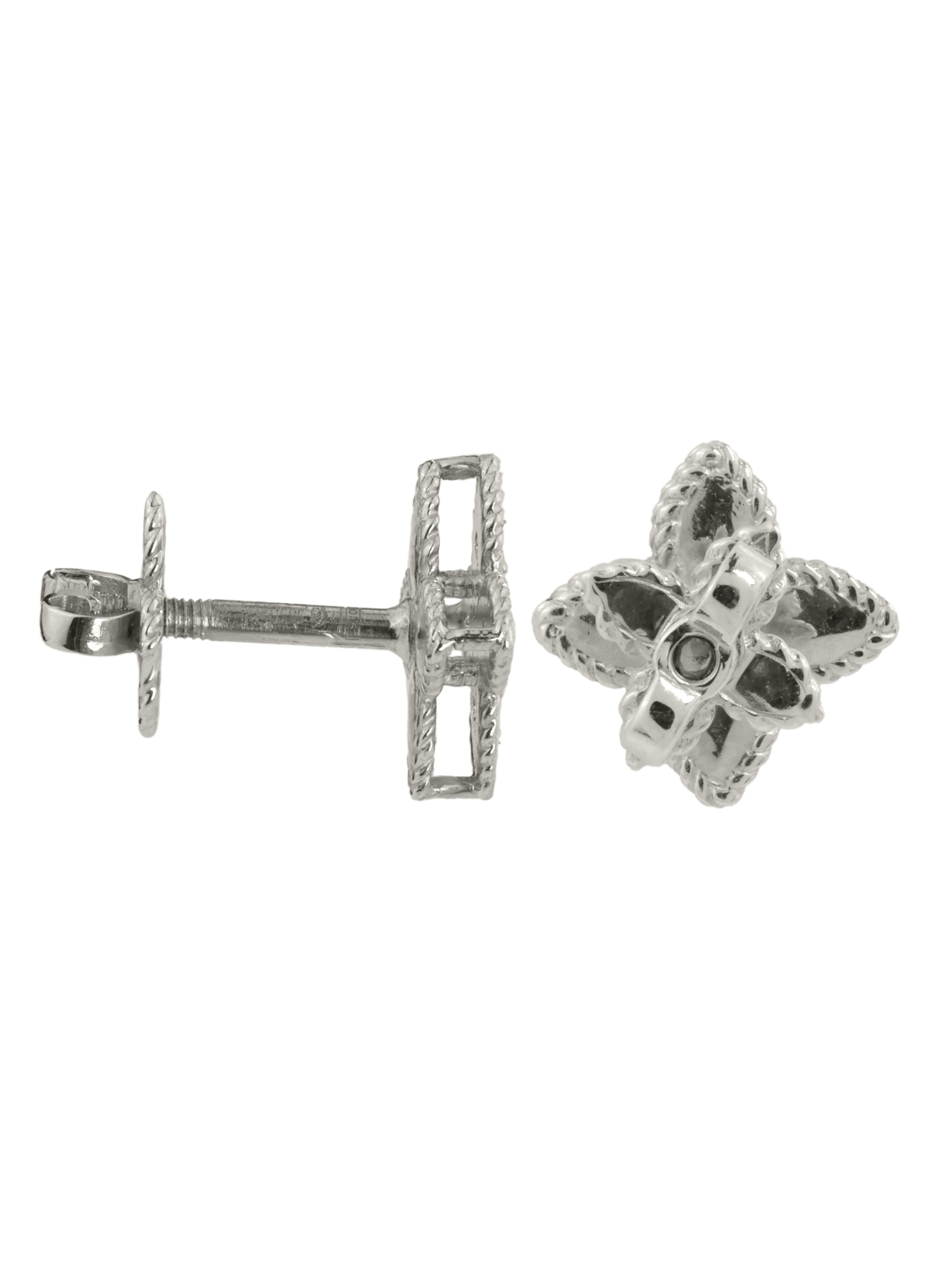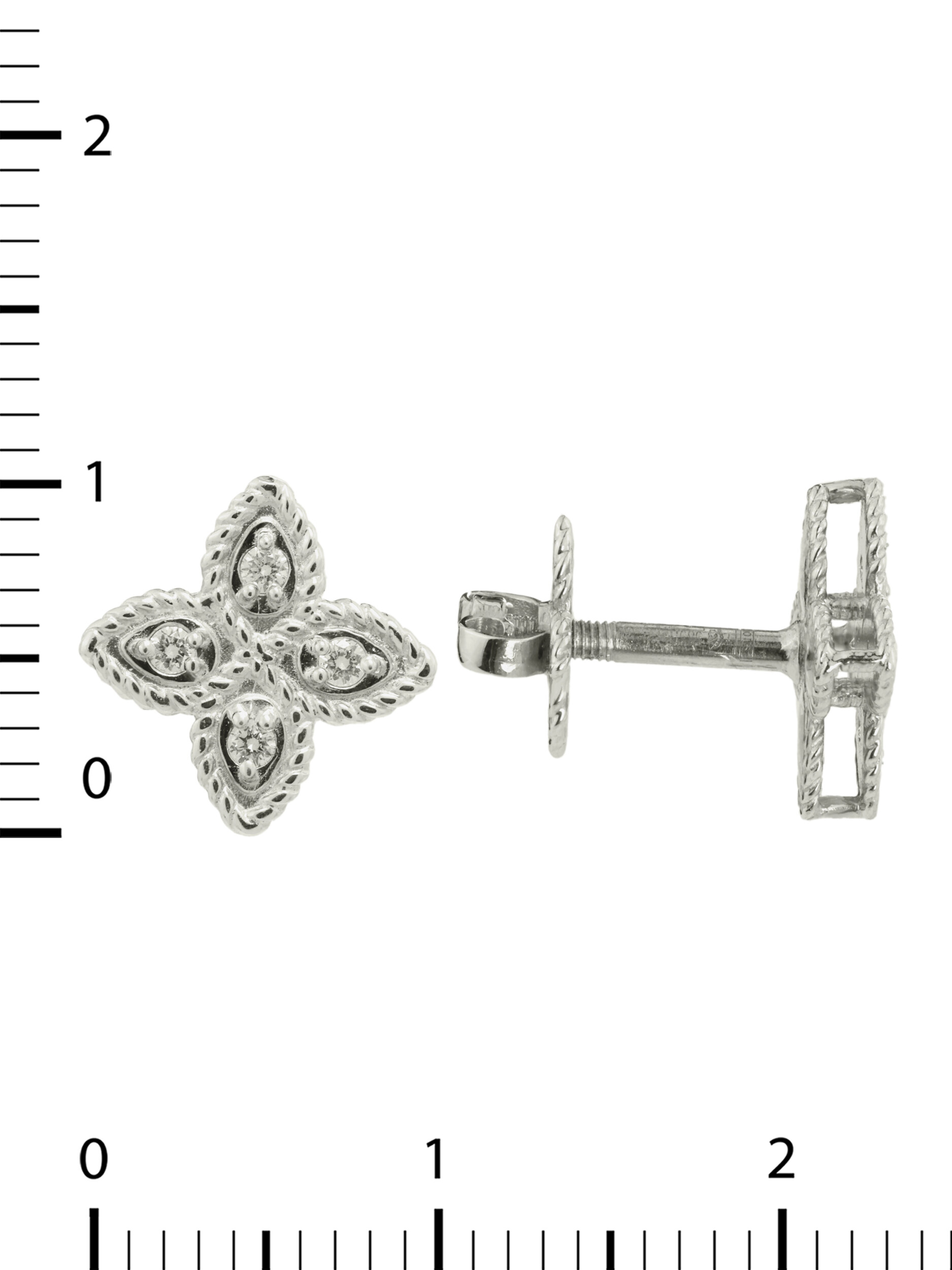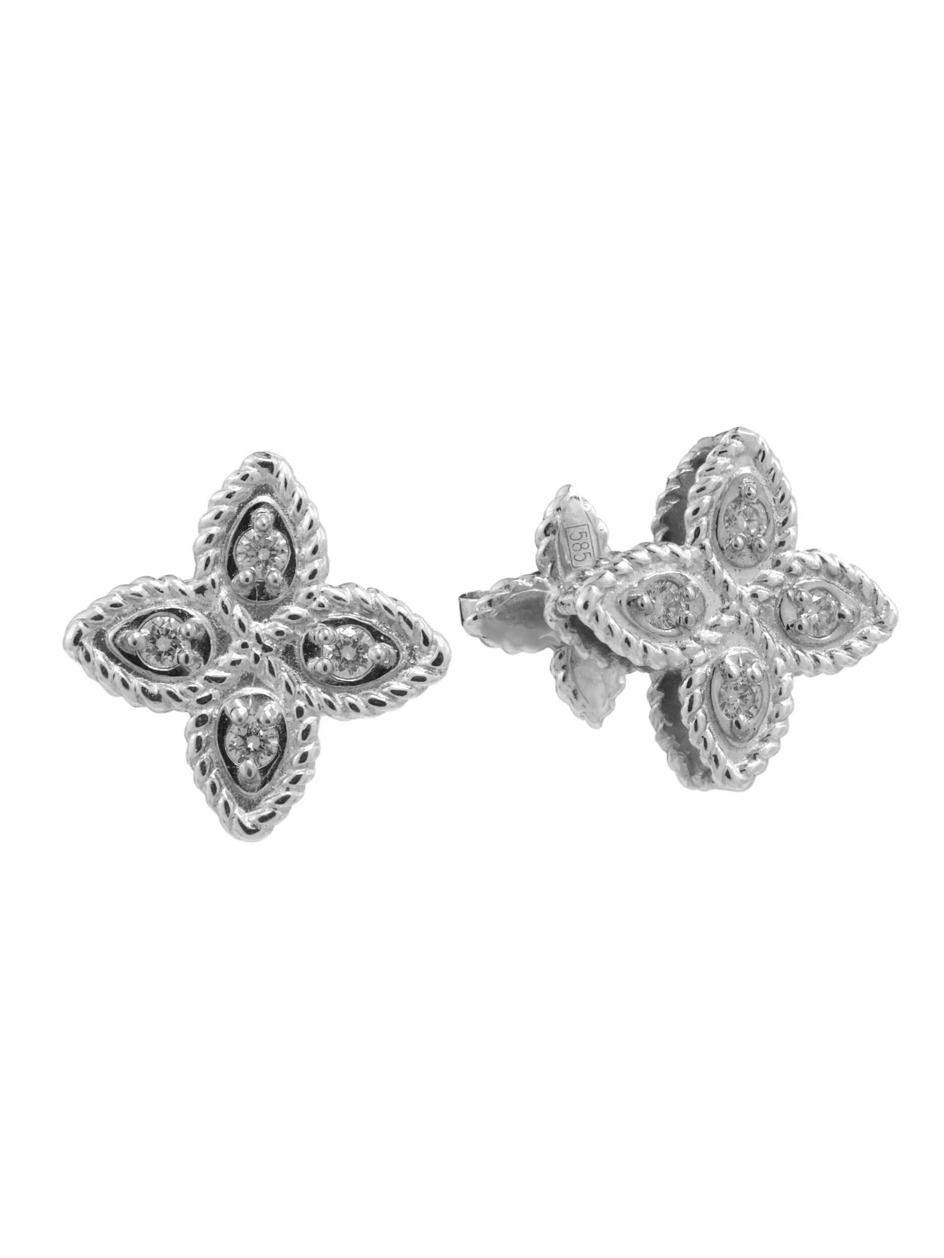 Изысканные серьги из белого золота 585 пробы — гармоничное сочетание классической элегантности и утонченного дизайна. Данное украшение, представленное в коллекции De Luxe — Венецианская принцесса, выполнено в форме клевера, что придает изделию особую выразительность и символизм. Благородный холодный блеск металла подчеркивается восемью вставками из чистейших бриллиантов белого цвета. Камни круглой формы мастерски огранены, благодаря чему игра света в их гранях создает завораживающий эффект при каждом вашем движении.