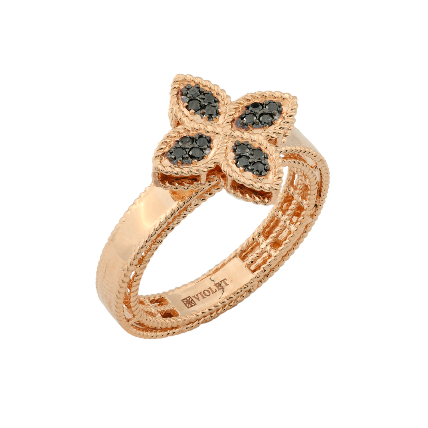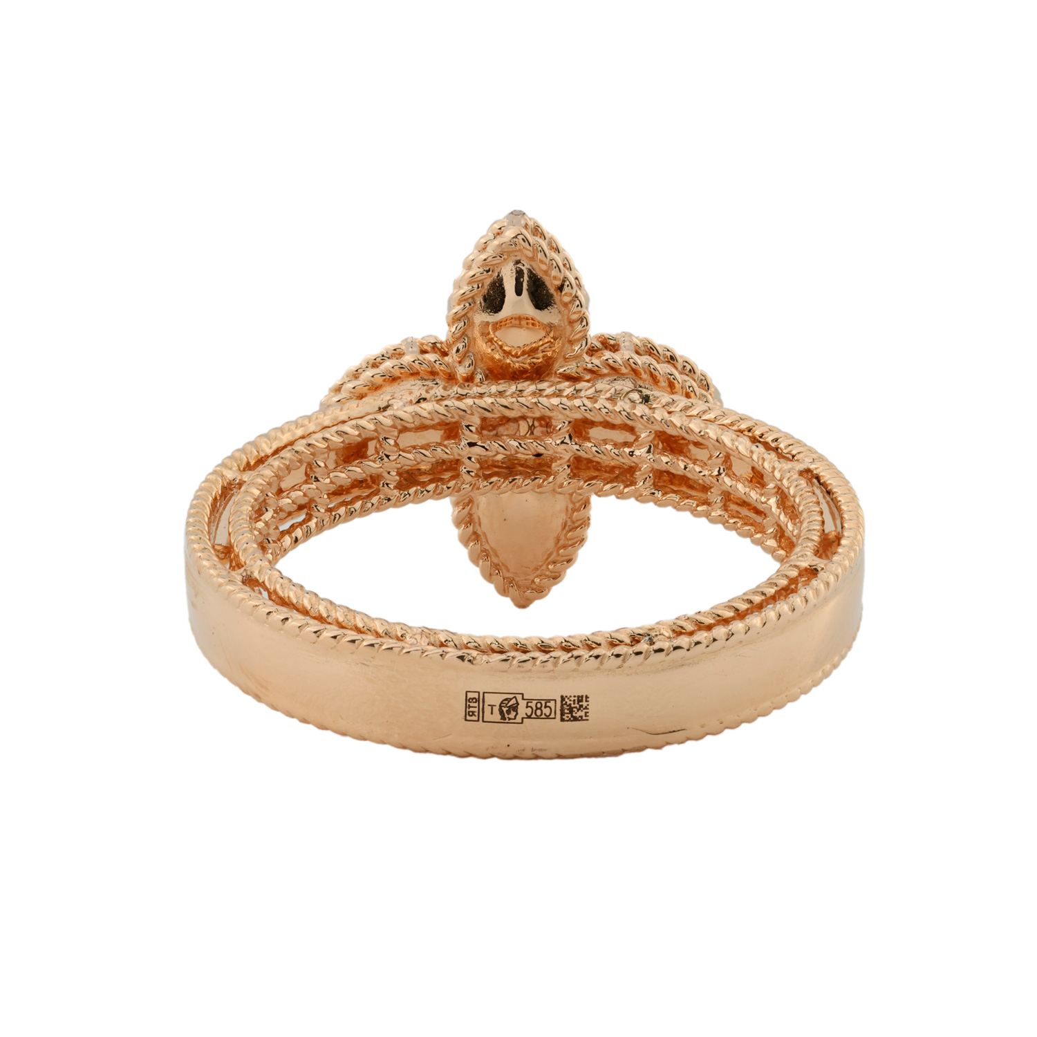 Кольцо из красного золота 585 пробы — это воплощение изысканности и утонченного стиля. Центральным элементом украшения стал выразительный дизайн в форме клевера, который придает изделию особое очарование и символичность. Детально проработанная фактура шинки в сочетании с центральным мотивом делает это кольцо центральным акцентом любого образа.
