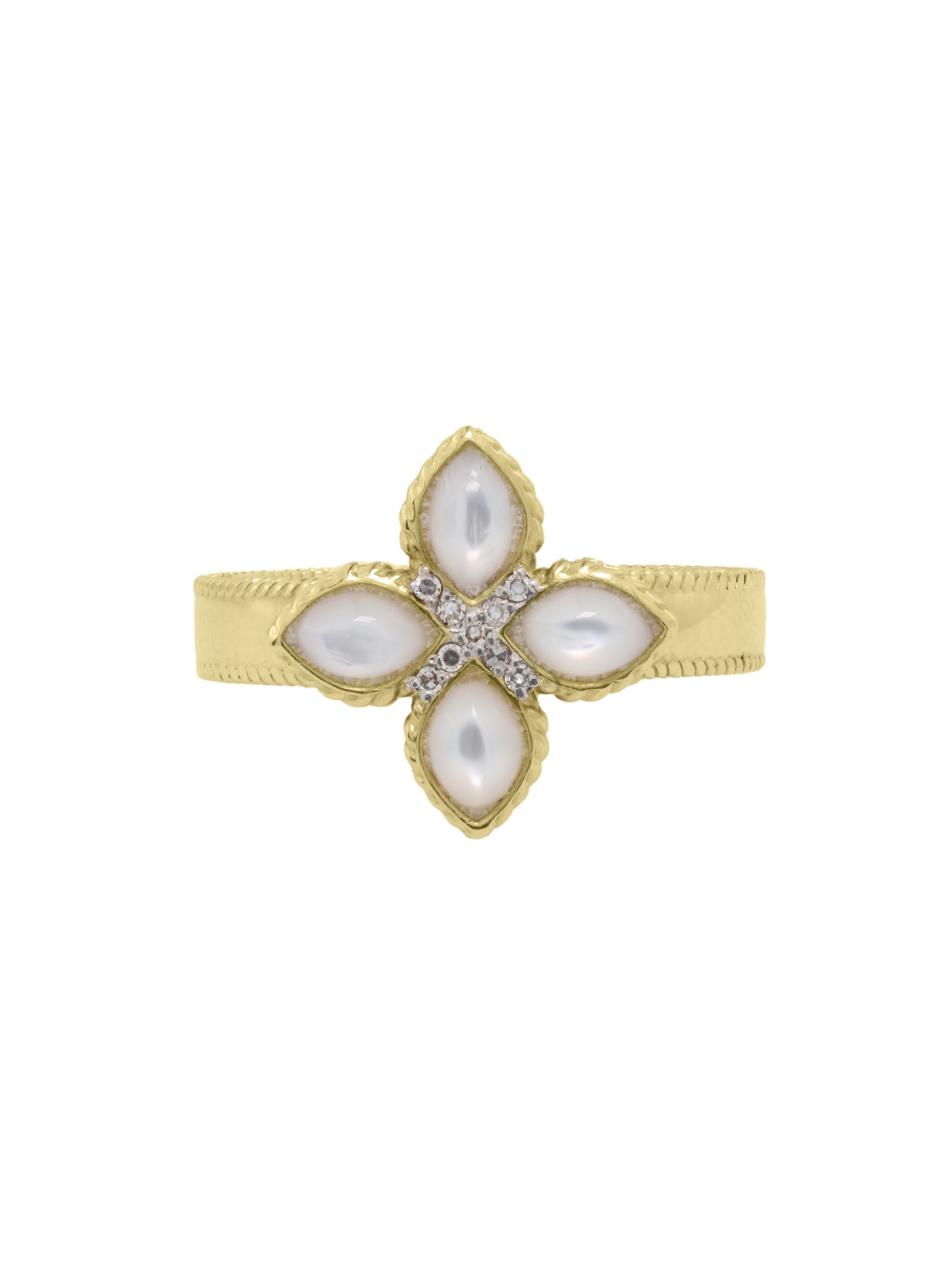 Кольцо из лимонного золота c бриллиантами и перламутром