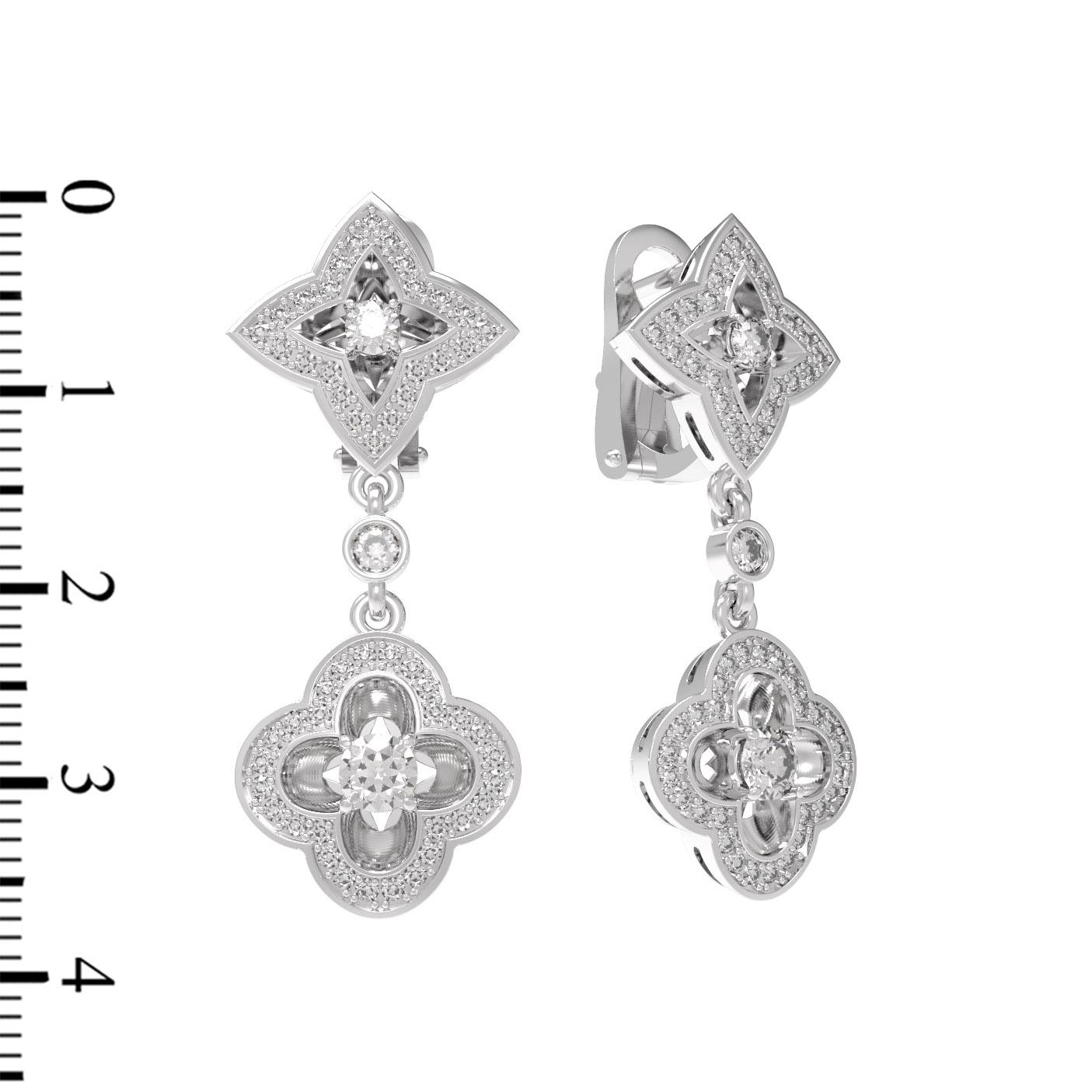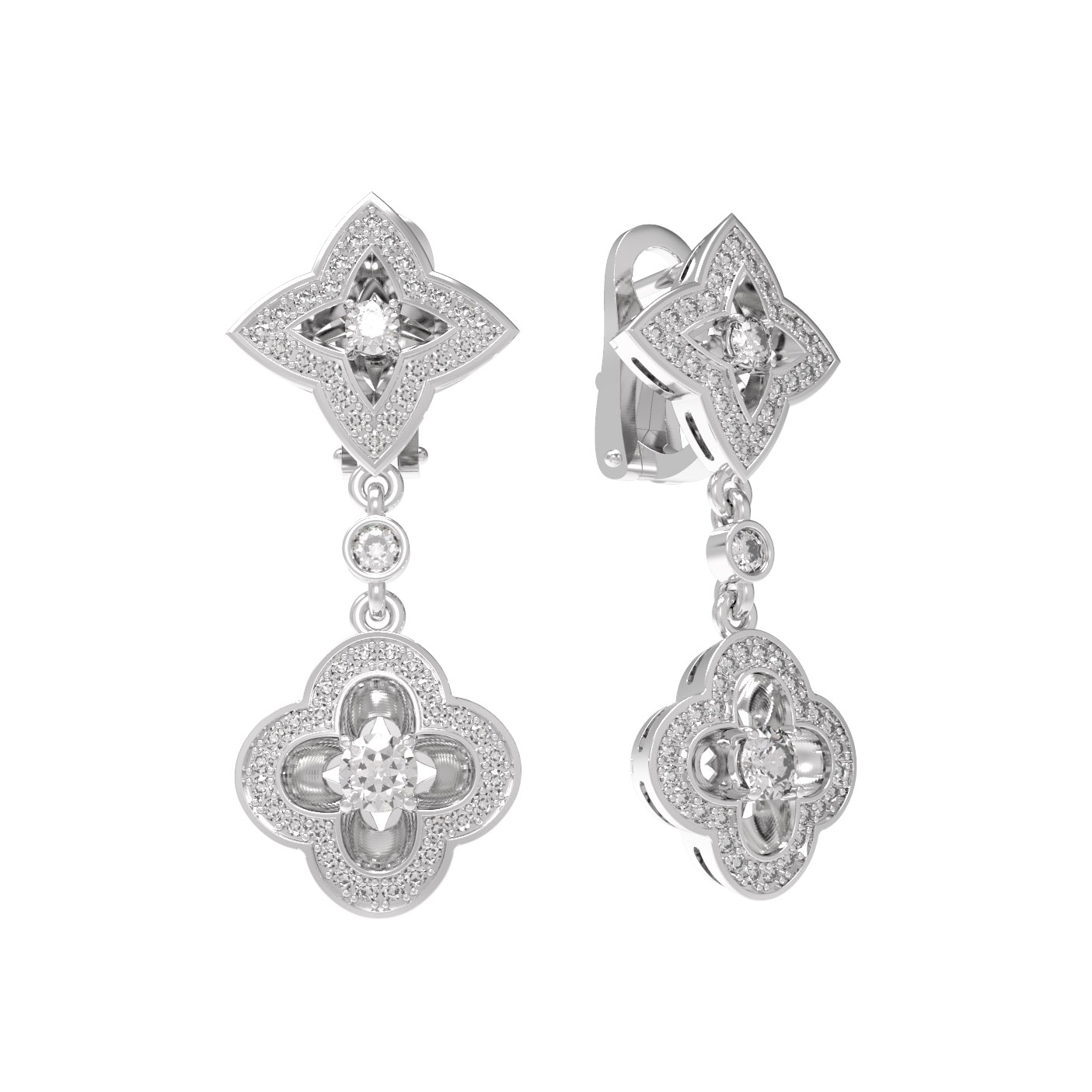Центральным элементом композиции выступают 110 бриллиантов круглой формы с чистым белым блеском, которые плотно покрывают поверхность металла, создавая роскошное сияние при каждом движении. Холодный оттенок белого золота идеально гармонирует с прозрачностью вставок, придавая серьгам благородный вид. Такие серьги универсальны и подходят как для женщин, так и для мужчин, которые ценят лаконичную роскошь и внимание к деталям.