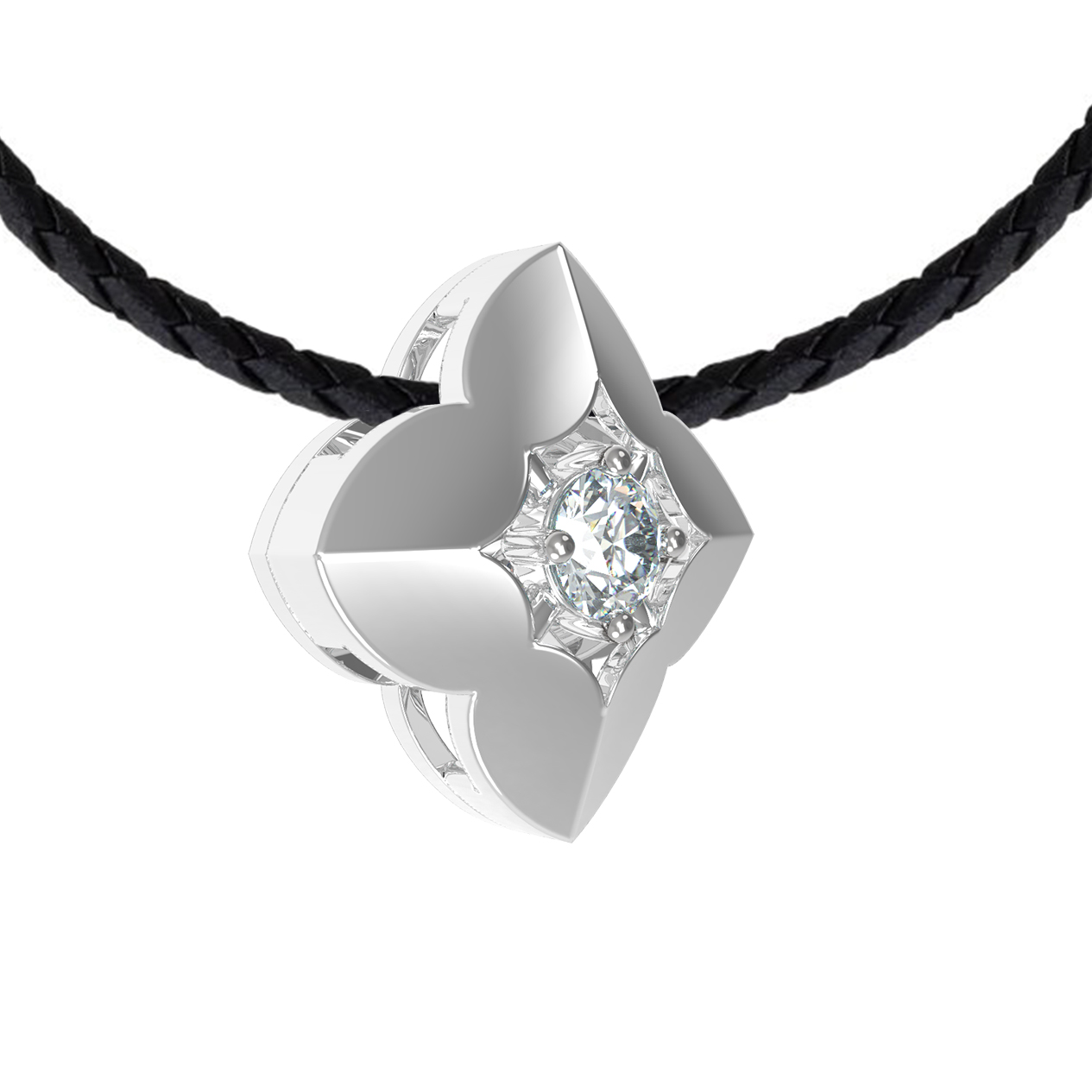 В центре композиции расположен один безупречный бриллиант круглой огранки. Белый цвет вставки гармонично сочетается с холодным оттенком белого золота, создавая эффект чистого сияния. Благодаря универсальному дизайну и безупречному стилю, эта подвеска подходит как для женщин, так и для мужчин, предпочитающих сдержанные и значимые аксессуары.