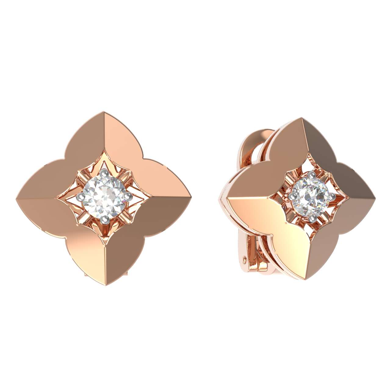 В центре каждого цветка расположена роскошная вставка — бриллиант круглой огранки. Белый цвет вставок создает выразительный контраст с красным металлом, заставляя свет играть и переливаться при каждом движении. В изделии использовано 2 бриллианта, что придает украшению сдержанную, но заметную роскошь. Благодаря продуманному дизайну, серьги будут одинаково гармонично смотреться как в женском, так и в мужском стиле, дополняя строгие или вечерние ансамбли.