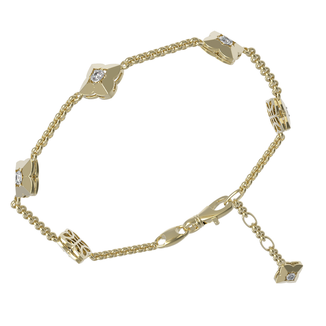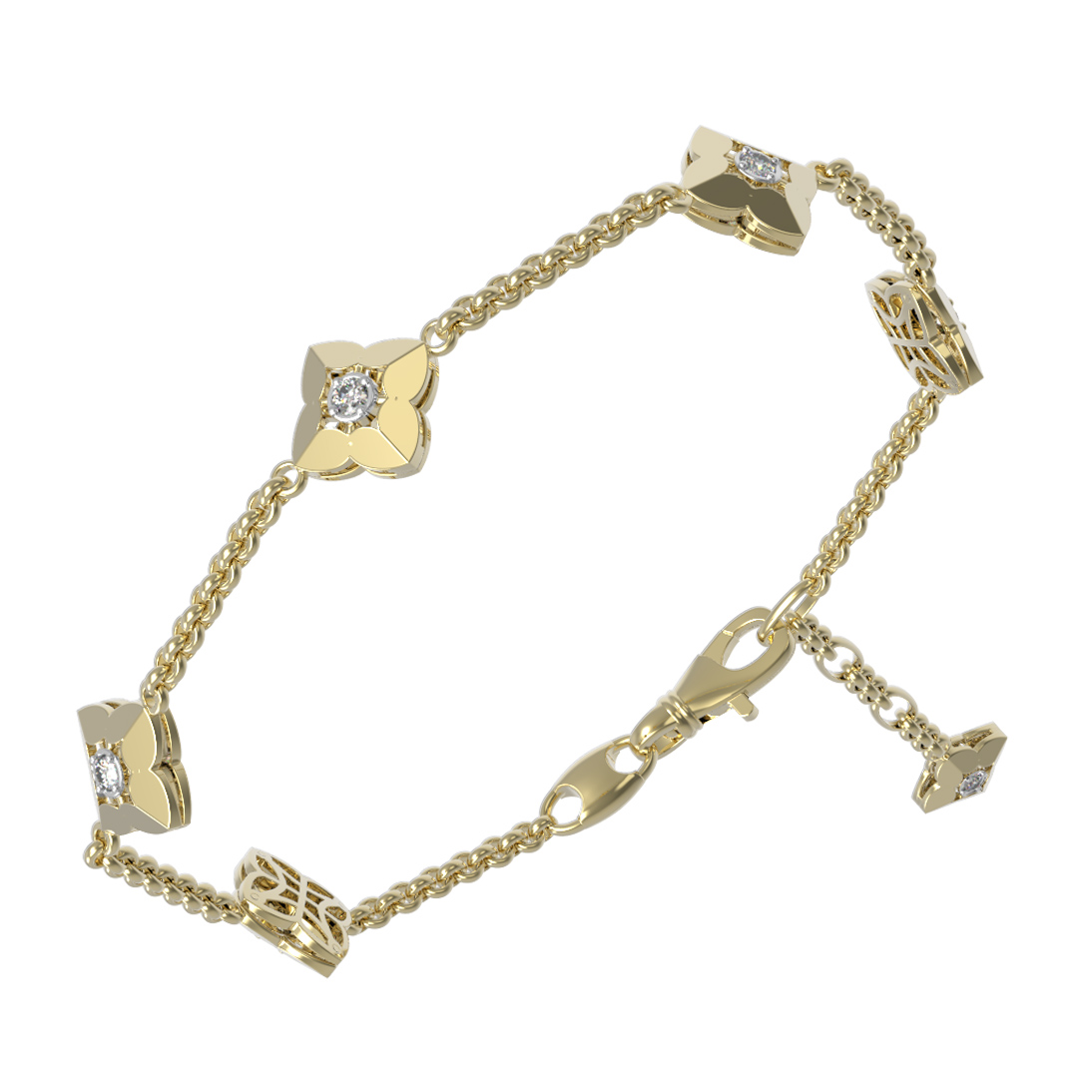 Изысканный браслет из лимонного золота 585 пробы — это воплощение утонченного стиля и ювелирного мастерства. Модель, представленная в коллекции De Luxe — Верона, притягивает взгляд своим оригинальным дизайном в виде цветов, который добавляет образу легкости и благородства. Мягкое сияние лимонного металла гармонично подчеркивает семь круглых вставок из бриллиантов белого цвета, которые изящно акцентируют внимание на каждой детали украшения.