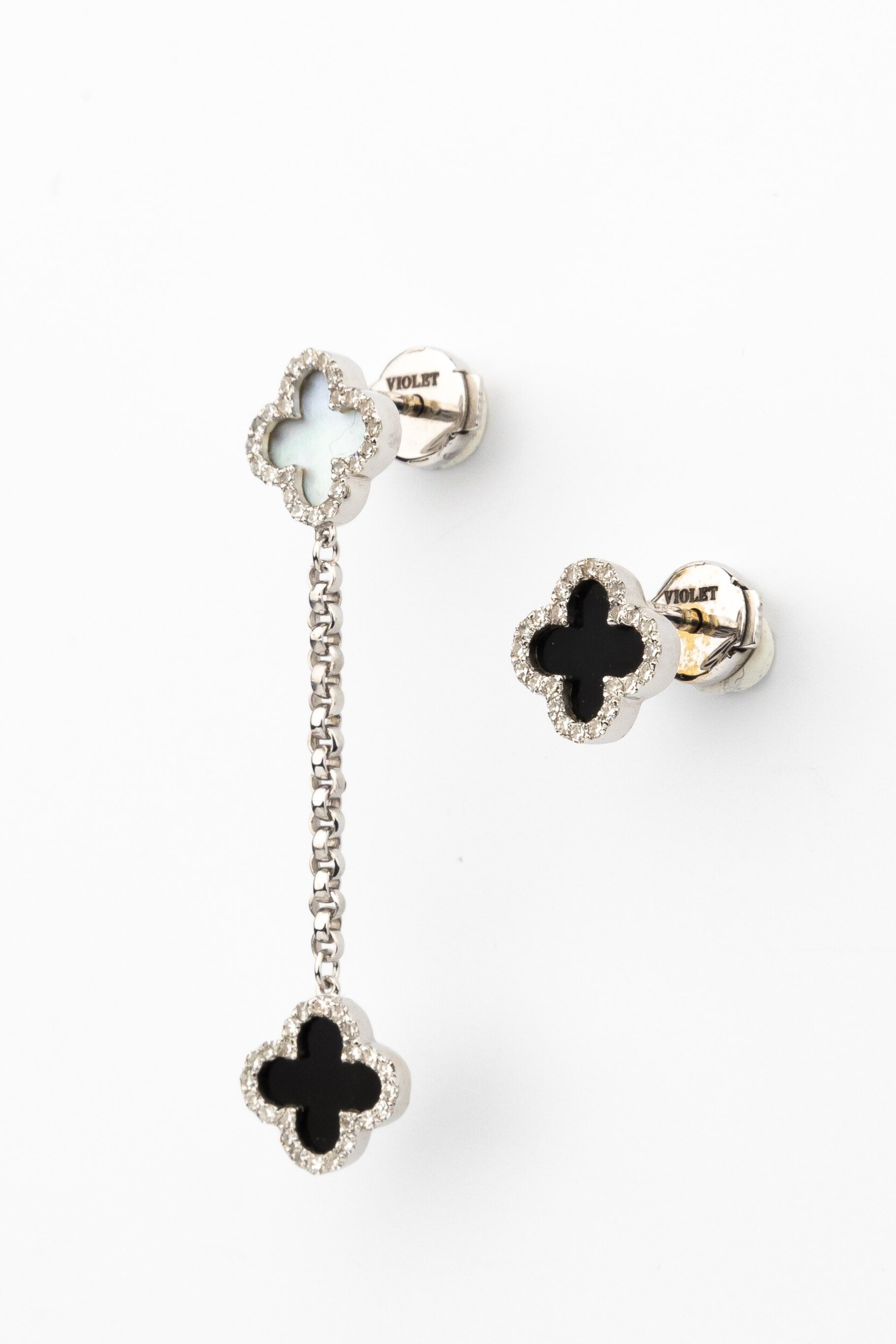 Серьги из белого золота c бриллиантами, ониксом и перламутром