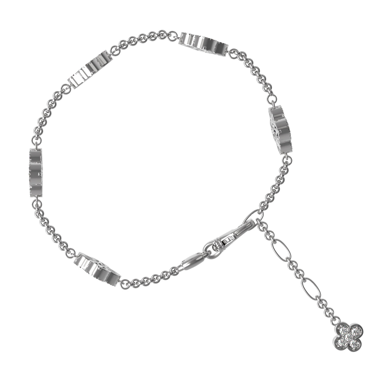 Центральными элементами композиции являются вставки в форме клевера, инкрустированные 128 бриллиантами круглой огранки. Камень к камню, они создают вокруг основных вставок ослепительное ореол света, приковывающий взгляды. Это украшение создано для того, чтобы стать завершающим штрихом вашего образа или ценным подарком для дорогого человека.