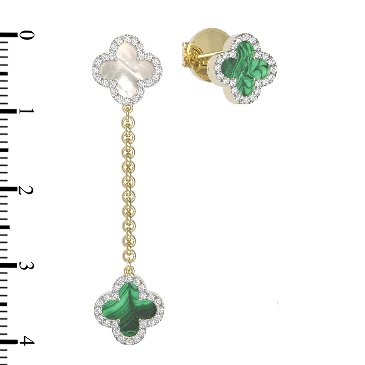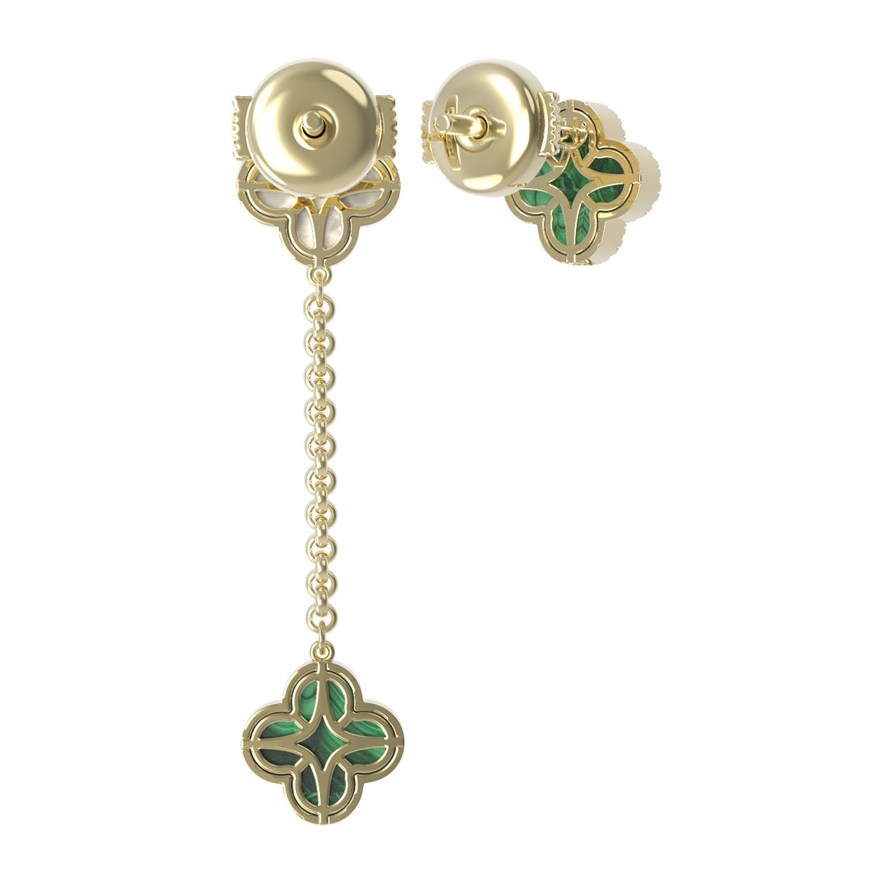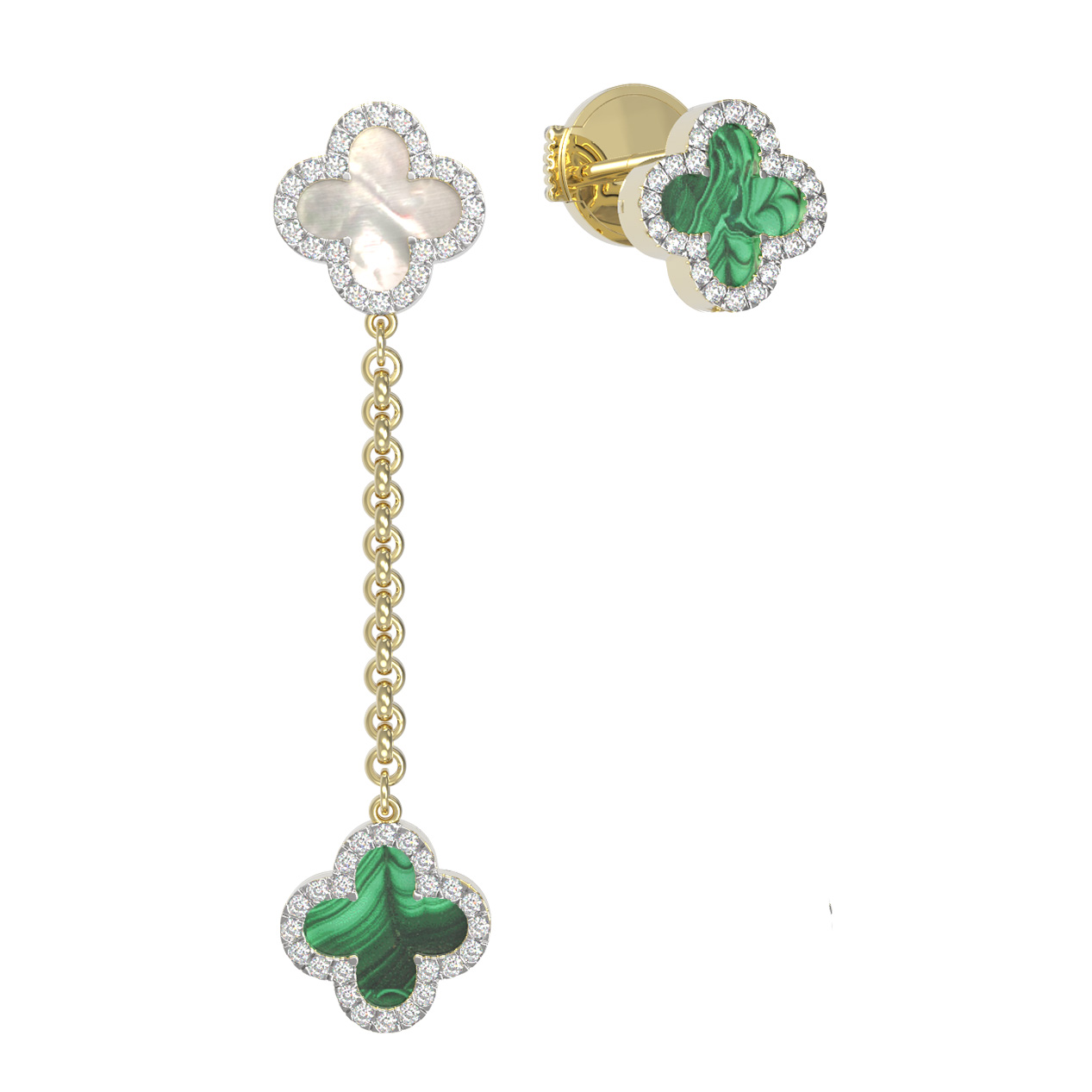 Серьги из лимонного золота c бриллиантами, малахитом и перламутром