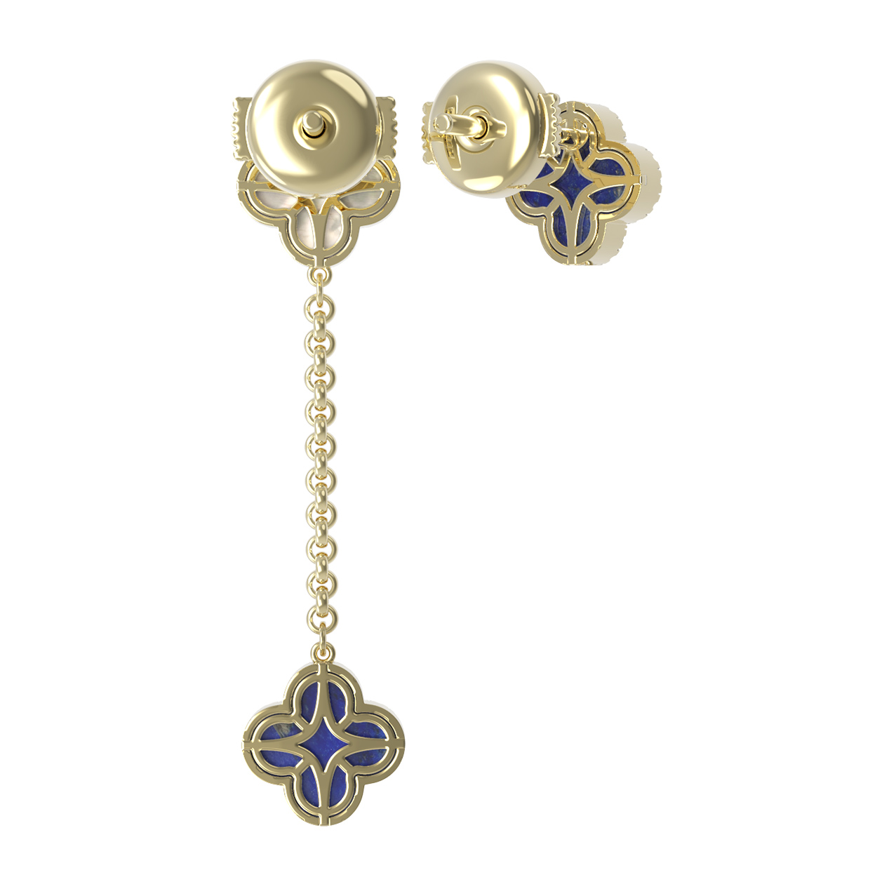 Эти серьги — универсальный аксессуар, созданный для женщин и мужчин, стремящихся к индивидуальности в своем образе. Тщательно проработанный дизайн позволяет использовать украшение как самостоятельно, так и в составе комплекта, дополняя другие изделия из линии De Luxe — Цветок клевера — Бриллианты. Безупречное сочетание синего лазурита, светлого перламутра и лимонного золота делает эти серьги идеальным выбором для ценителей эксклюзивных ювелирных изделий, которые способны подчеркнуть статус и безупречный вкус владельца.