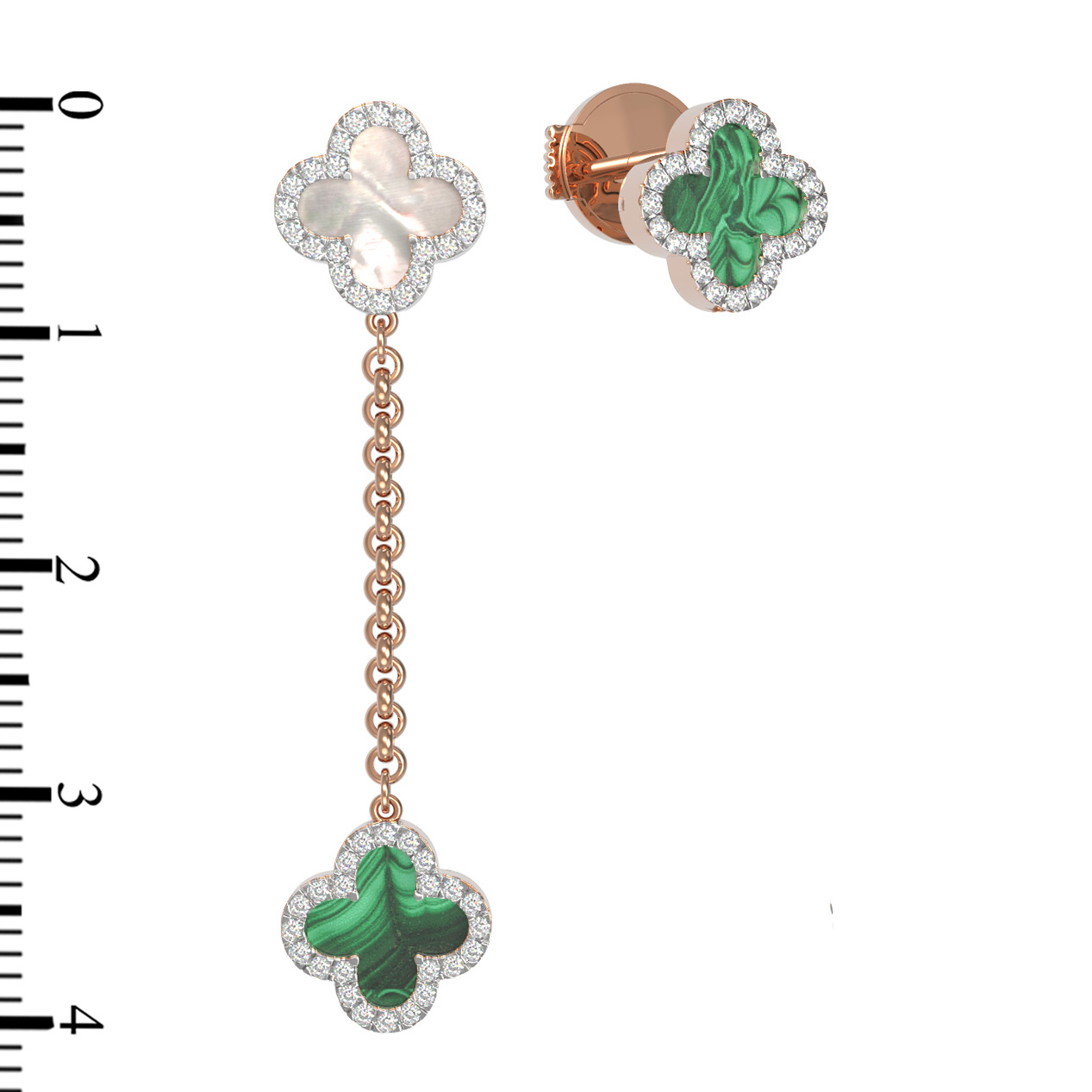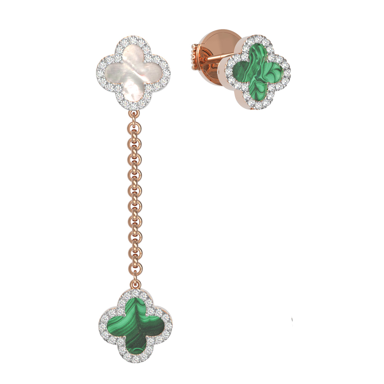 Серьги из золота c бриллиантами, малахитом и перламутром