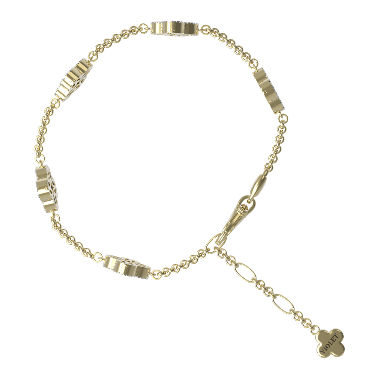 Изысканный браслет из коллекции De Luxe — Цветок клевера — Бриллианты станет воплощением вашего безупречного вкуса. Это украшение выполнено из лимонного золота 585 пробы, чей благородный солнечный оттенок идеально подчеркивает роскошь использованных материалов. Дизайн изделия вдохновлен символом удачи — формой клевера, которая придает украшению особое очарование и узнаваемый стиль.