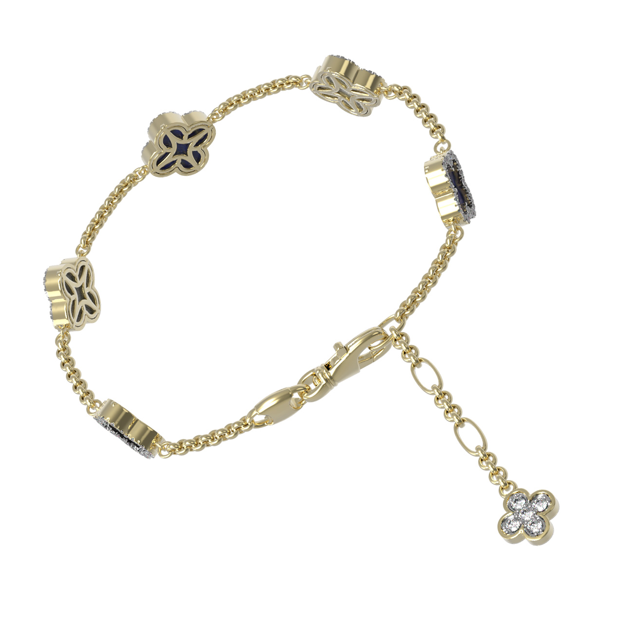Браслет из лимонного золота c бриллиантами, лазуритом и перламутром
