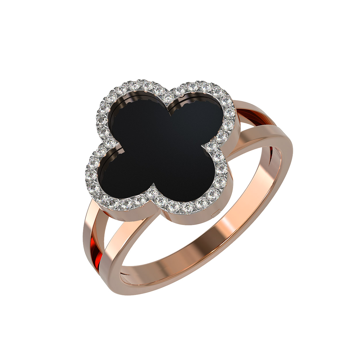Кольцо из красного золота 585 пробы — это воплощение элегантности и глубокого символизма, представленное в изысканной коллекции De Luxe — Цветок клевера — Бриллианты. Центральным элементом украшения является искусное исполнение цветка клевера, чей узнаваемый дизайн придает образу нотки утонченности и благородства. Глубокий черный оникс в центре композиции эффектно контрастирует с теплыми оттенками золота и блеском вставок, создавая гармоничное сочетание классики и современных ювелирных тенденций.