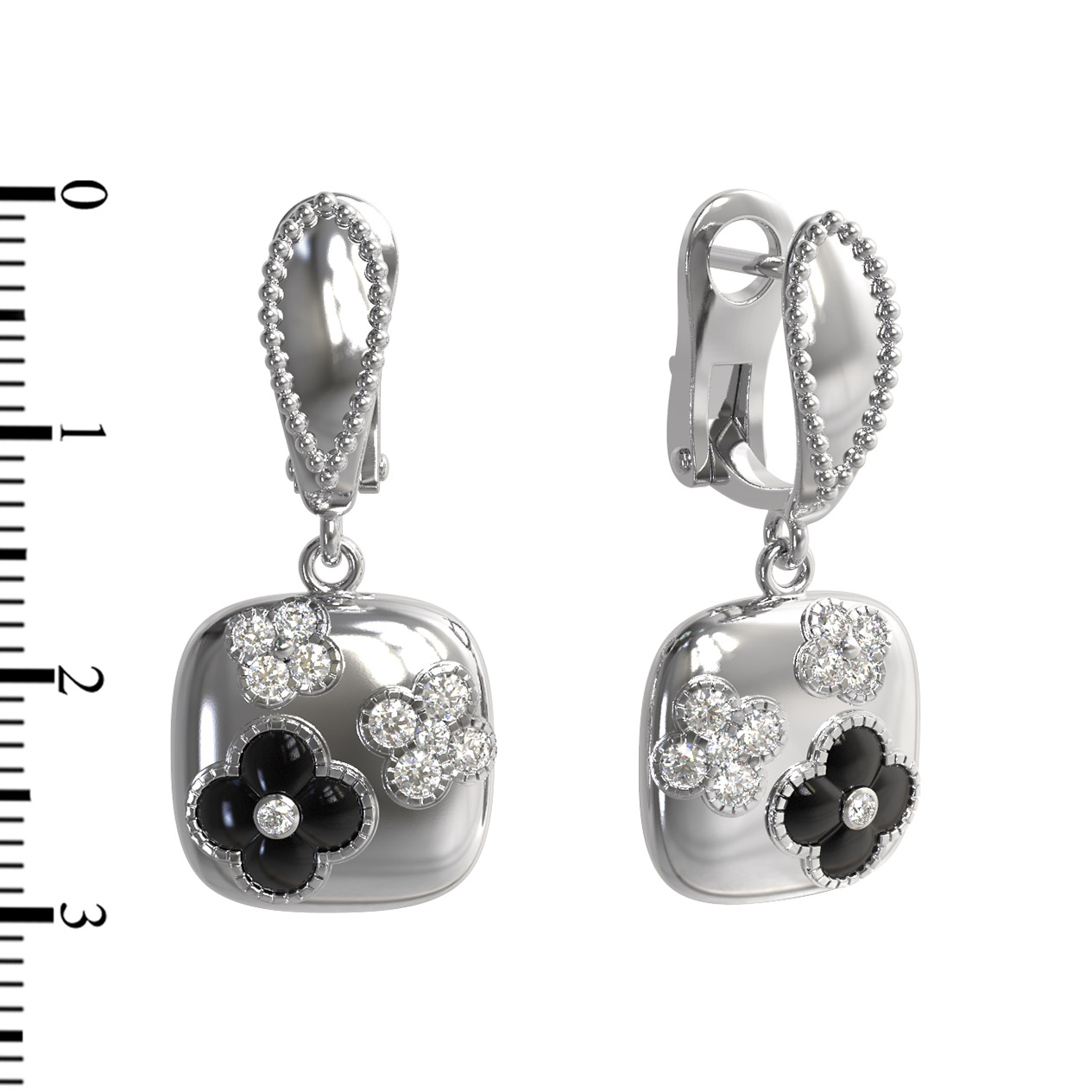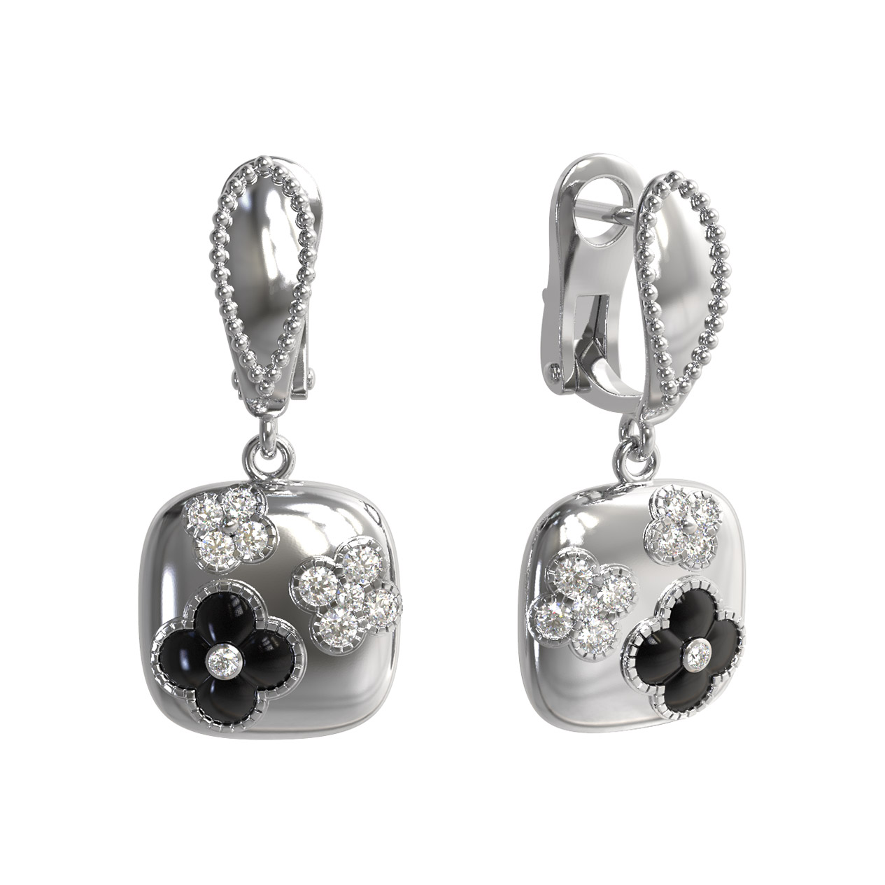 Серьги из белого золота c бриллиантами и ониксом