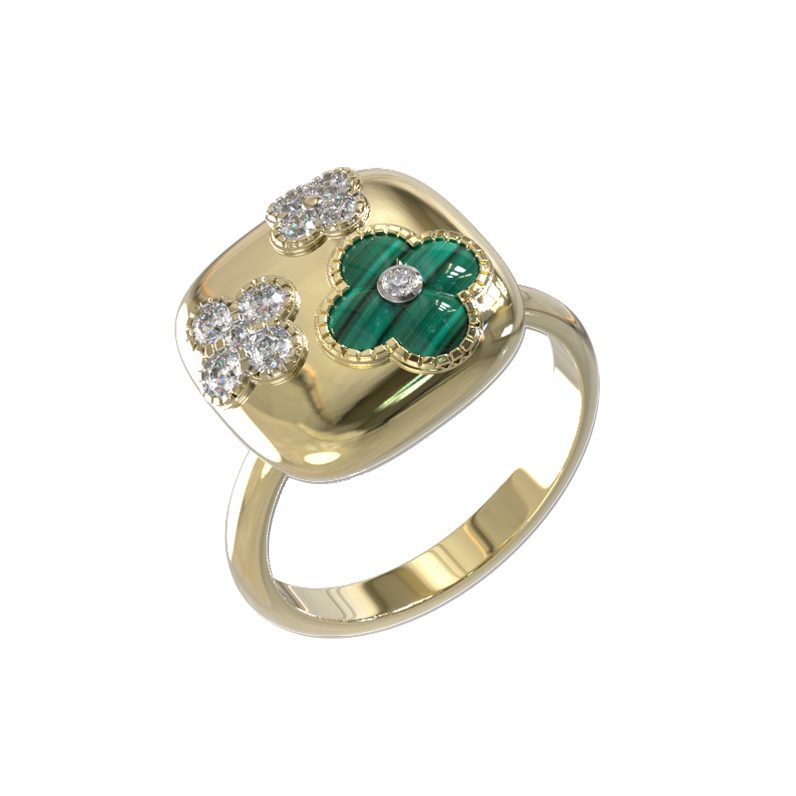 Кольцо из лимонного золота c бриллиантами и малахитом