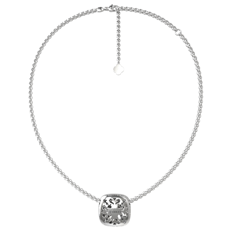 В ювелирном изделии гармонично переплетаются две формы вставок: строгая геометрия круга и изящный четырехлистник. Всего колье насчитывает 13 вставок, каждая из которых закреплена с безупречным вниманием к деталям. Универсальный дизайн делает это украшение подходящим как для женщин, так и для мужчин, позволяя создавать неповторимые образы — от повседневных до вечерних. Такое колье может стать центральным акцентом вашего ювелирного гардероба или прекрасным дополнением к другим украшениям, так как модель отлично сочетается с аналогичными аксессуарами, входящими в комплекты.