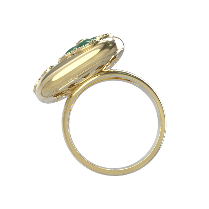 Кольцо из лимонного золота c бриллиантами и малахитом