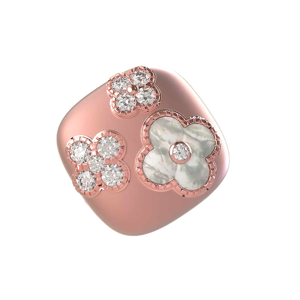 Кольцо из розового золота c бриллиантами и перламутром