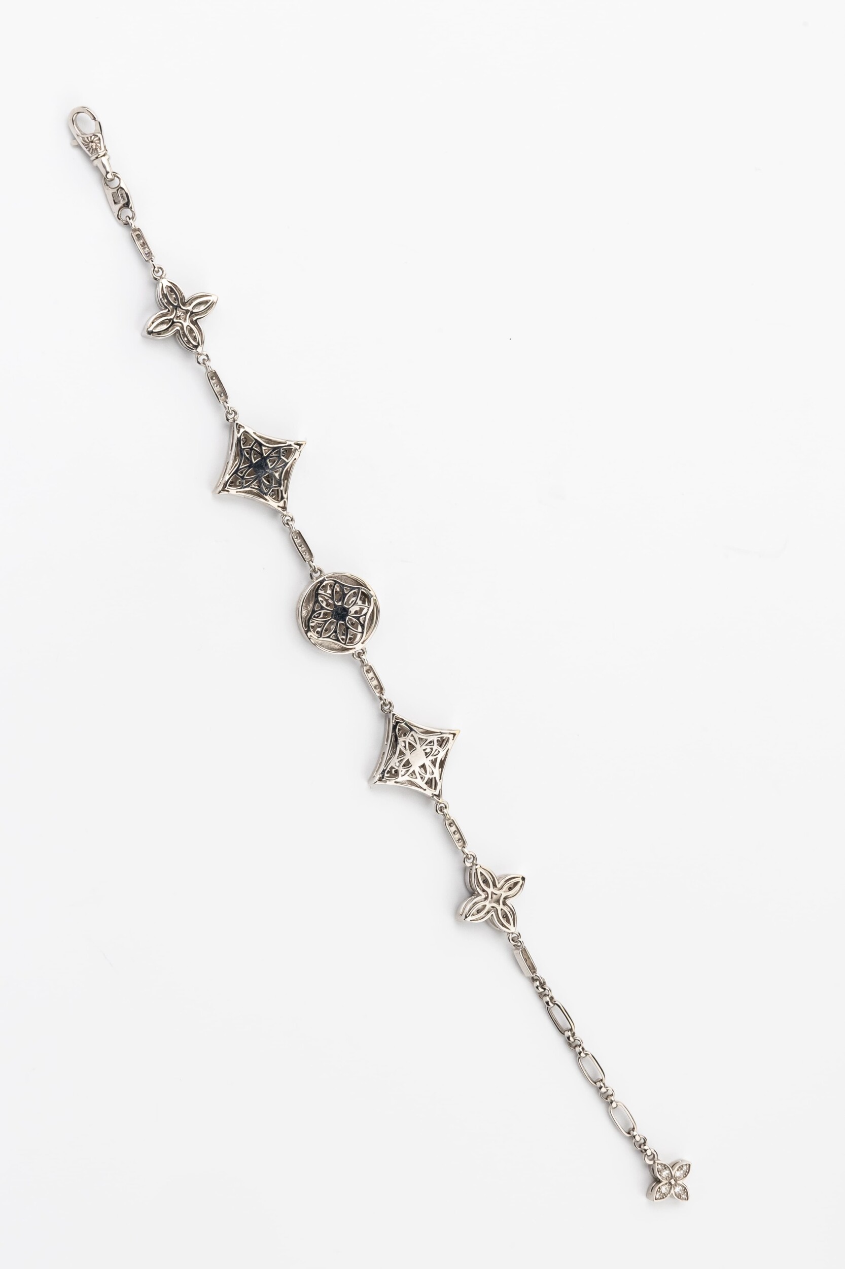 Это универсальное украшение подходит как для женщин, так и для мужчин, предпочитающих лаконичные и в то же время выразительные аксессуары. Браслет из белого золота с бриллиантами гармонично впишется в ваш гардероб, а также может стать частью изысканного комплекта. Каждая деталь изделия подчеркивает высокое мастерство исполнения, делая его достойным дополнением любой ювелирной коллекции.