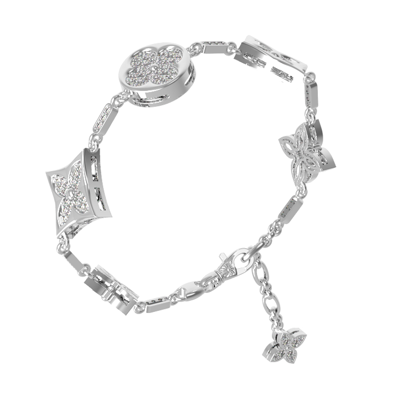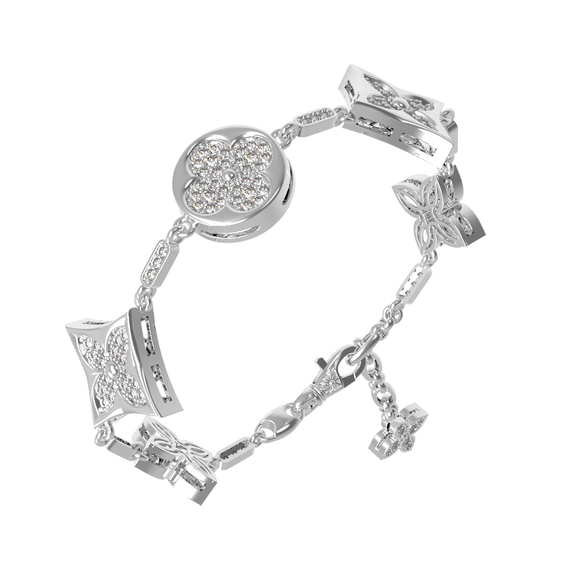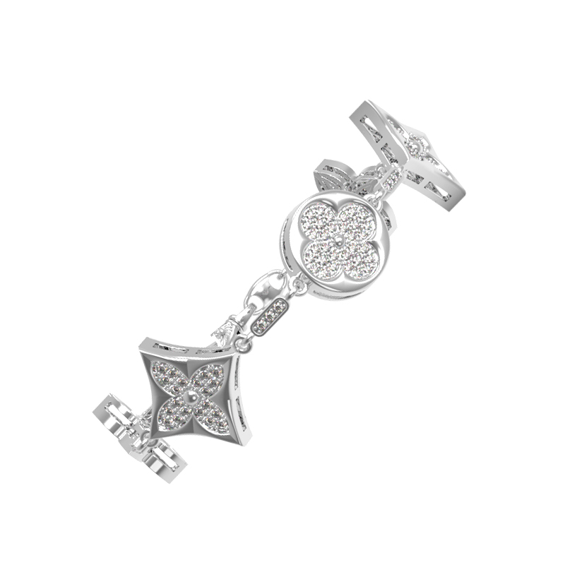 Центральным элементом композиции выступают 154 бриллианта круглой формы с белым цветом вставок. Тщательно отобранные камни создают эффектное мерцание, которое приковывает восхищенные взгляды. Продуманная конструкция браслета позволяет ему комфортно располагаться на запястье, обеспечивая удобство при повседневном ношении.