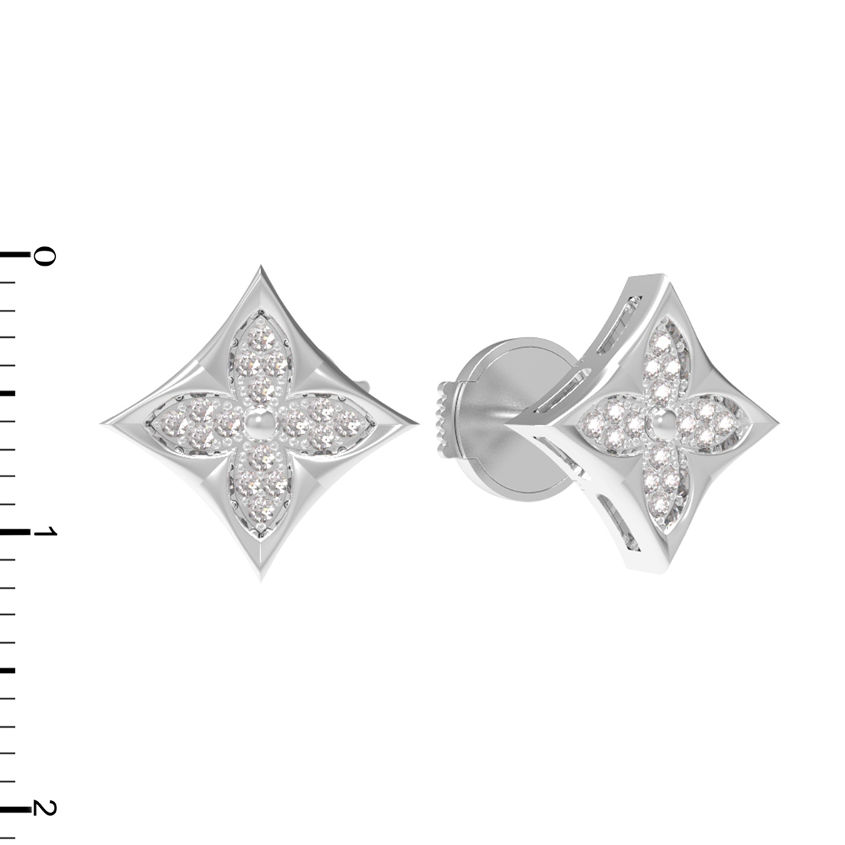 Центральным элементом композиции является искусная инкрустация белыми бриллиантами. Всего в изделии использовано 32 камня круглой формы, которые создают неповторимую игру света и наделяют серьги благородным сиянием. Белый цвет металла идеально подчеркивает прозрачность и чистоту вставок, формируя цельный и лаконичный образ.