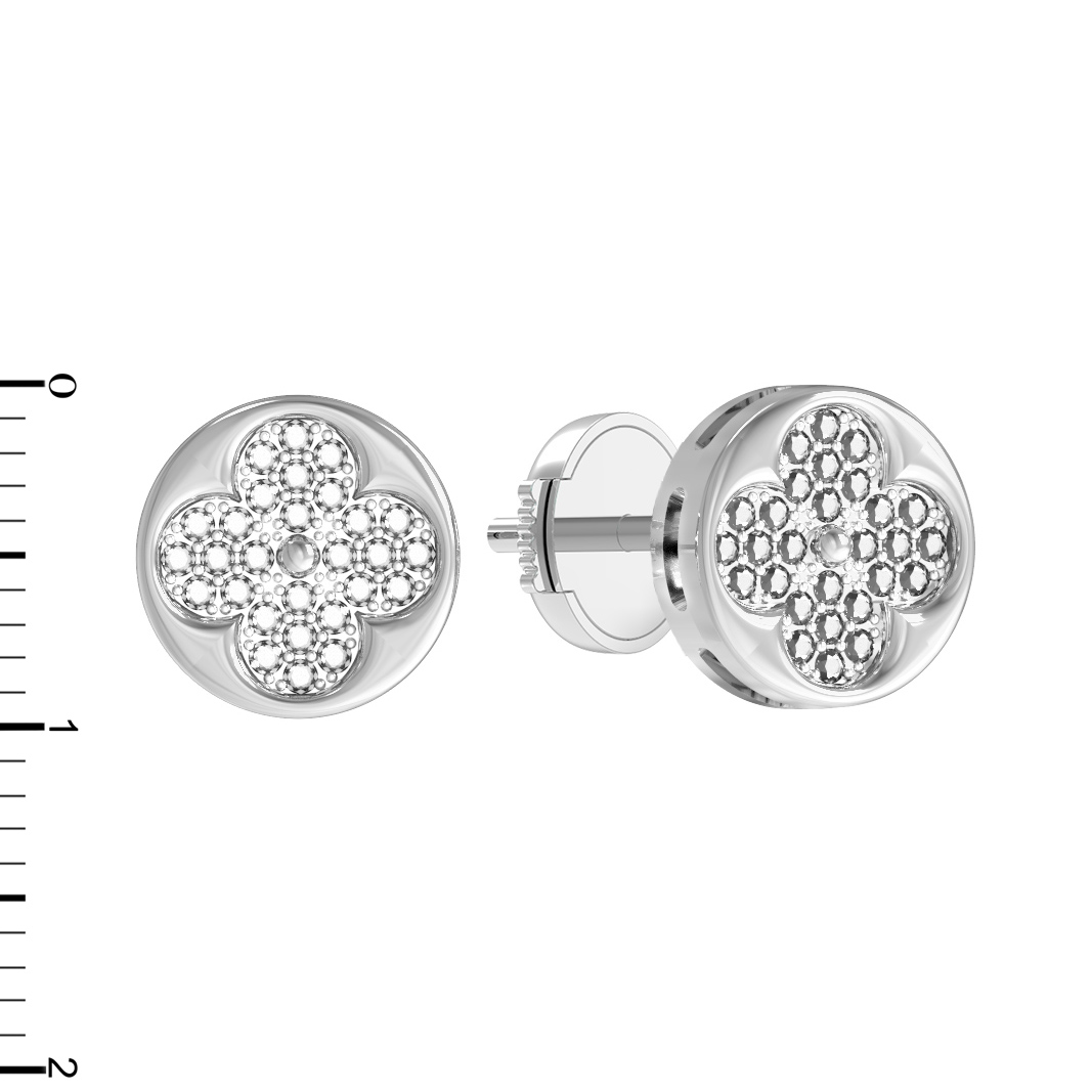 Элегантные серьги из белого золота 585 пробы — изысканное воплощение стиля и мастерства ювелиров. Дизайн украшения, выполненный в форме классического клевера, притягивает взгляд своей лаконичностью и безупречными линиями. Благородный холодный отблеск белого металла гармонично дополняется сиянием драгоценных вставок. В данной модели использовано 56 бриллиантов круглой огранки, которые образуют единое сверкающее полотно, создавая завораживающую игру света при каждом движении.