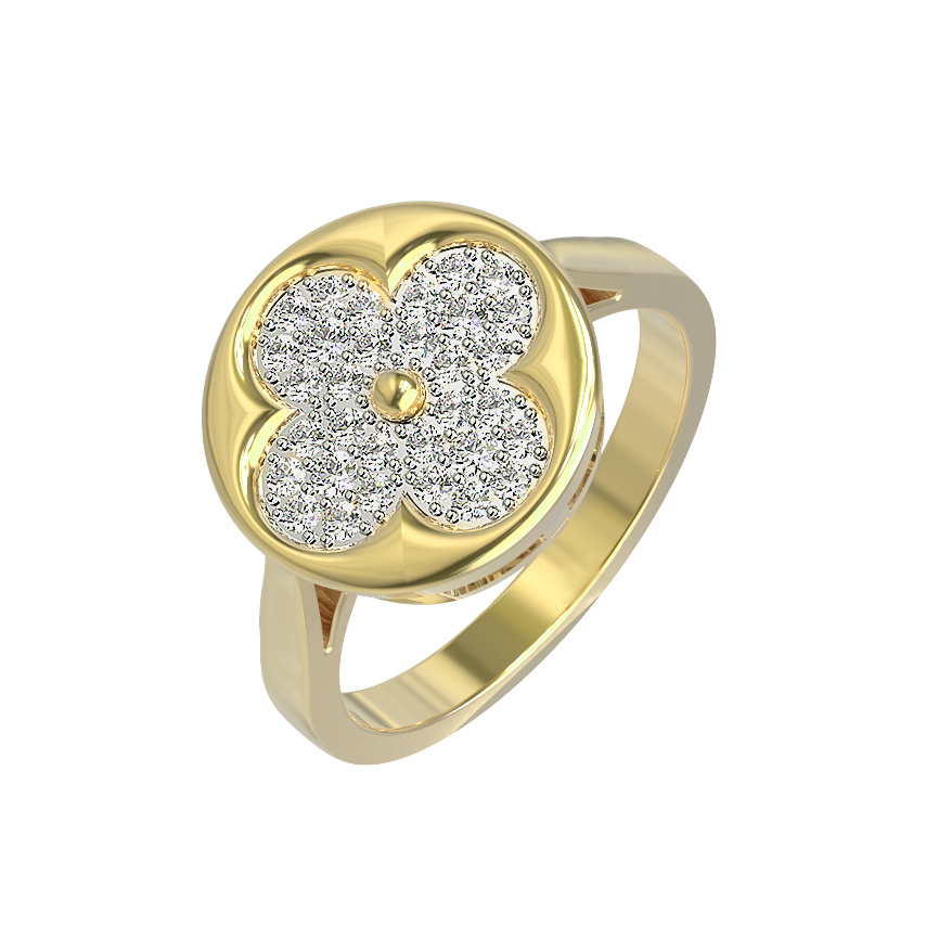 Элегантное кольцо из лимонного золота 585 пробы из коллекции De Luxe — Амальфи — Бриллианты станет достойным дополнением вашей ювелирной шкатулки. Это украшение выполнено в изысканном дизайне в форме клевера, который символизирует гармонию и безупречный вкус. Центральный элемент изделия украшают 32 круглых бриллианта с благородным белым цветом вставок, создающих выразительное и притягательное сияние при каждом вашем движении. Лимонный оттенок золота подчеркивает роскошный блеск драгоценных камней, придавая образу особую утонченность.
