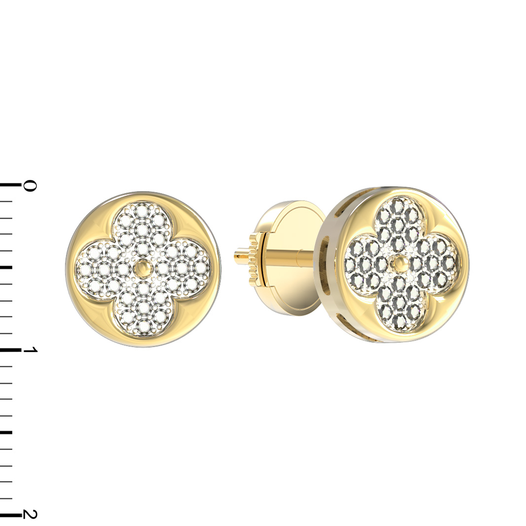 Центральную часть композиции украшают 56 бриллиантов круглой огранки. Белый цвет вставок эффектно контрастирует с насыщенным цветом лимонного металла, создавая притягательную игру света при каждом движении. Благодаря выверенным пропорциям и качественному исполнению, эти серьги гармонично дополнят как повседневный, так и вечерний гардероб.
