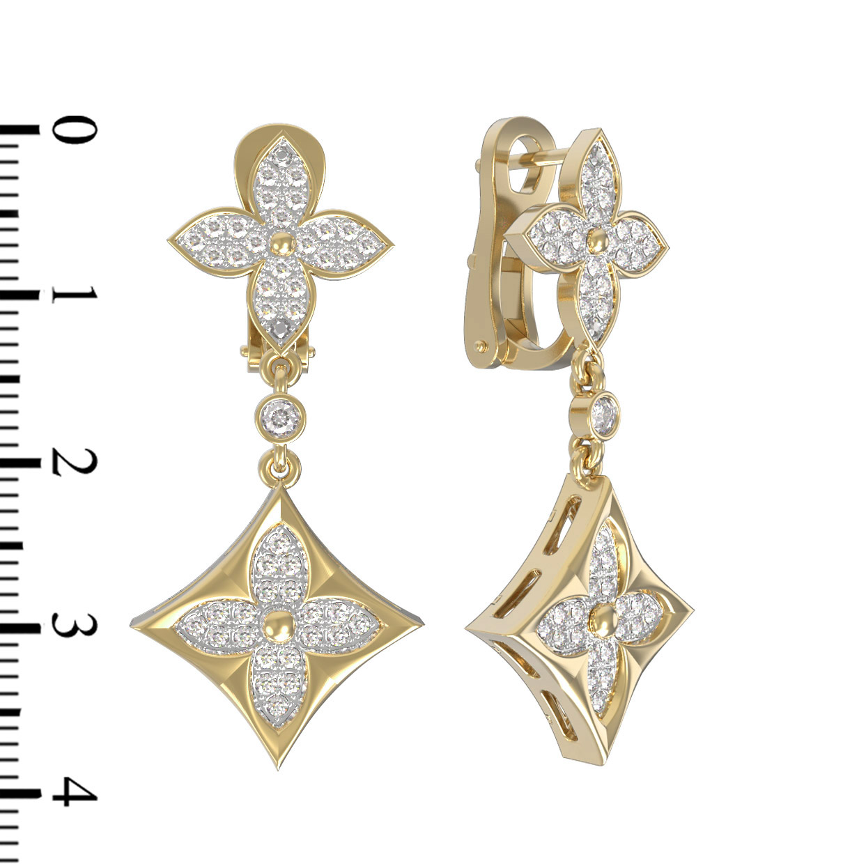 Центральным элементом композиции являются 90 бриллиантов круглой формы с безупречным белым цветом вставок. Камни мастерски закреплены, подчеркивая архитектурную выверенность изделия и его статусность. Благодаря своей выразительной форме и классической элегантности, эти серьги станут центральным акцентом вашего образа, подчеркивая индивидуальность и стиль владельца. Украшение органично вписывается как в женские, так и в мужские ювелирные гардеробы, демонстрируя универсальность дизайна.