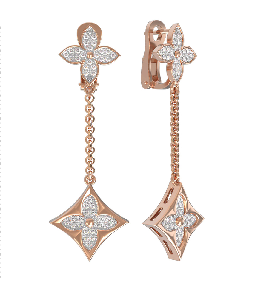 Серьги из золота с бриллиантами из коллекции De Luxe — Амальфи — Бриллианты — это изысканное ювелирное украшение, созданное для тех, кто ценит безупречный стиль и благородство материалов. Основа изделия выполнена из качественного красного золота 585 пробы, чей теплый оттенок подчеркивает сияние драгоценных камней и добавляет украшению особого шарма. Дизайн серег вдохновлен формой клевера, которая придает образу нежность и утонченность.