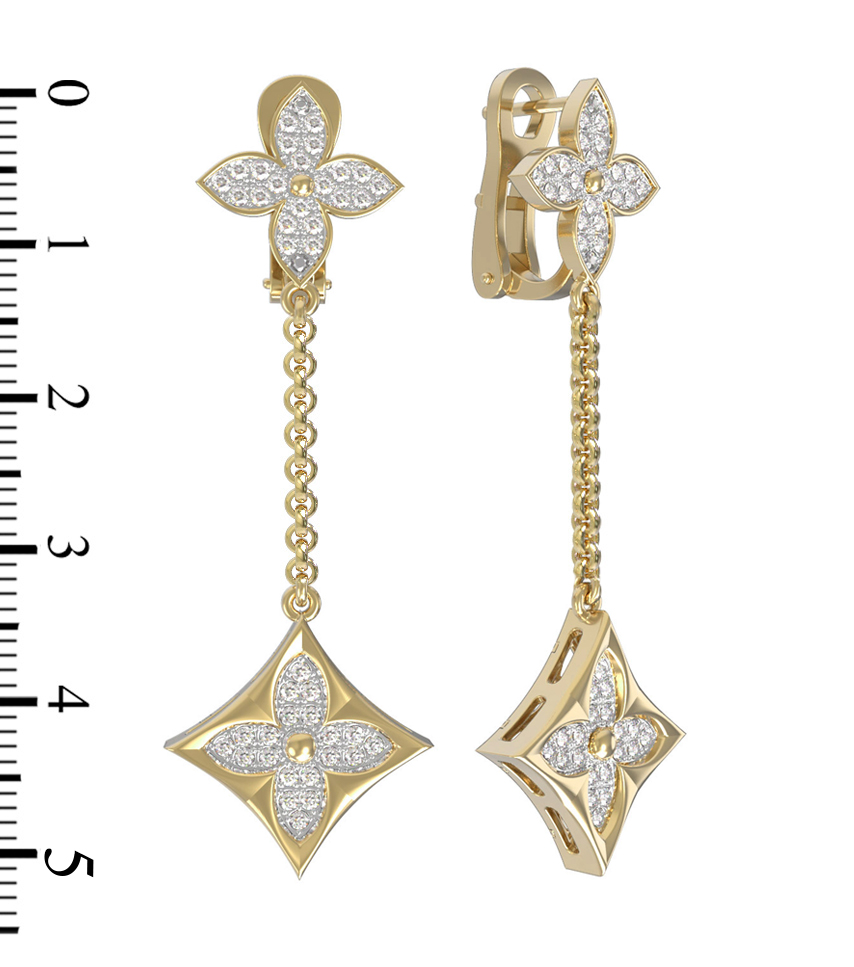 Роскошное сияние изделию обеспечивают 88 бриллиантов круглой огранки. Белый цвет вставок эффектно подчеркивает благородство металла. Длинная цепочка, соединяющая элементы декора, придает украшению динамику и грацию при каждом движении. Мастерское исполнение и внимание к деталям делают эти серьги идеальным дополнением как для торжественного выхода, так и для создания выразительного повседневного образа.