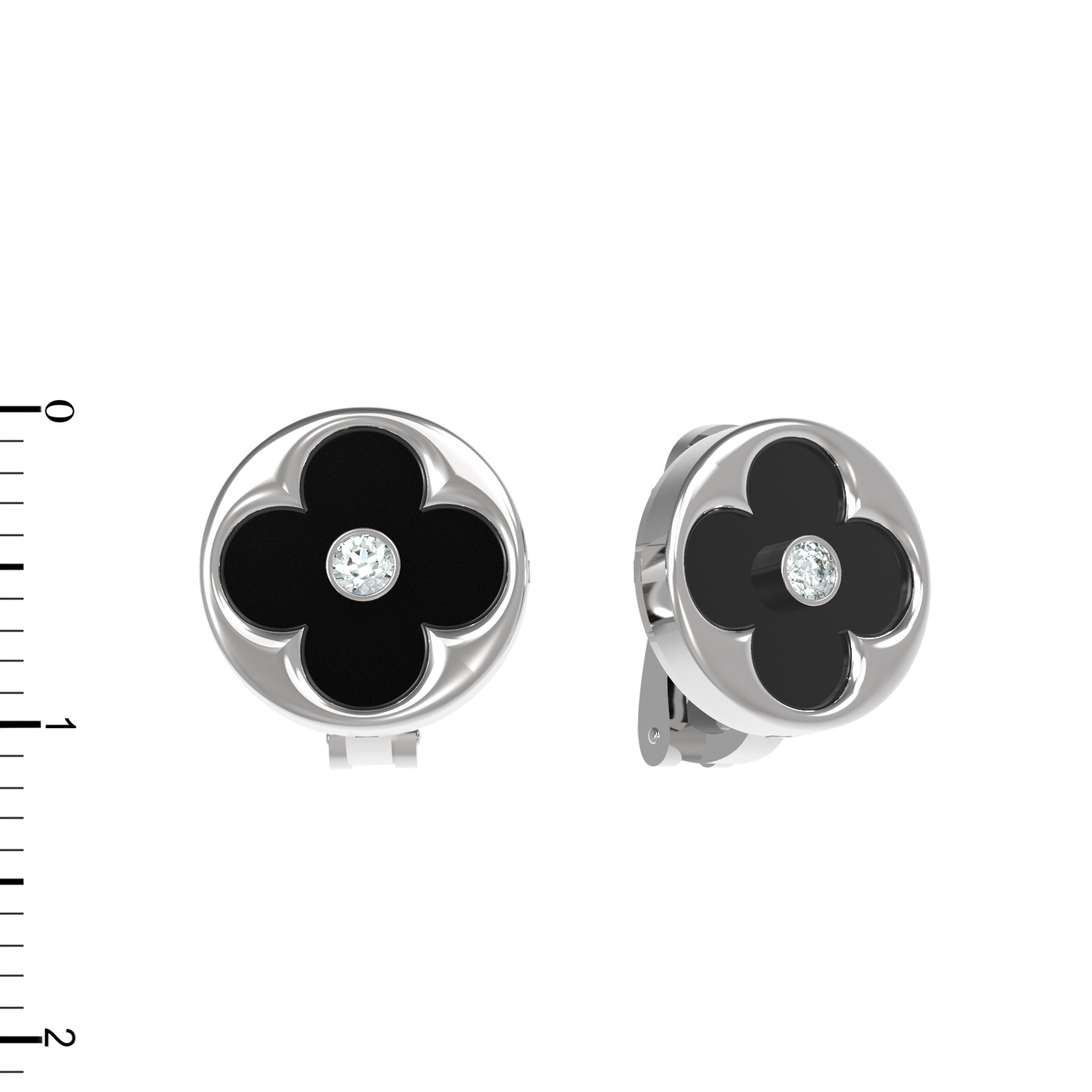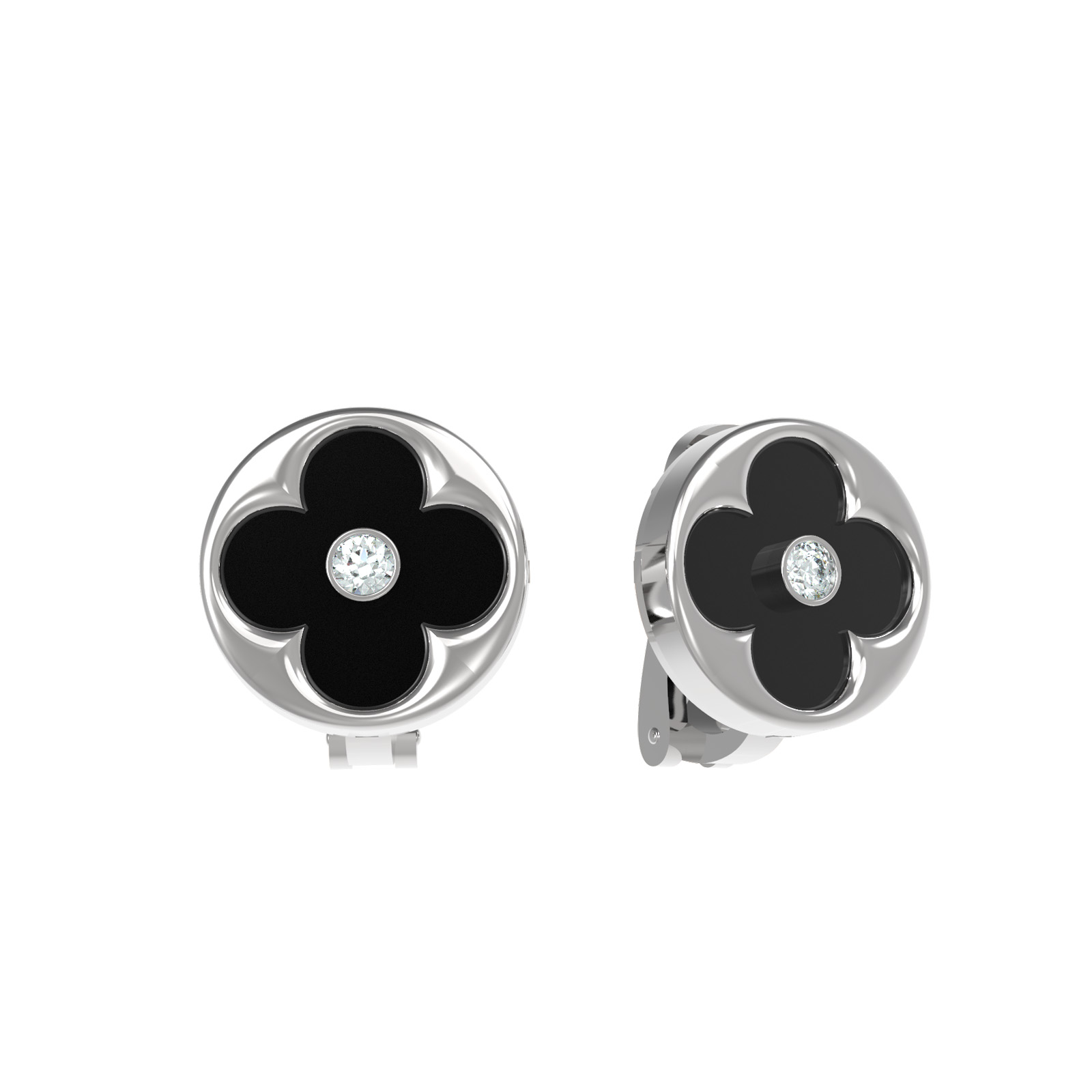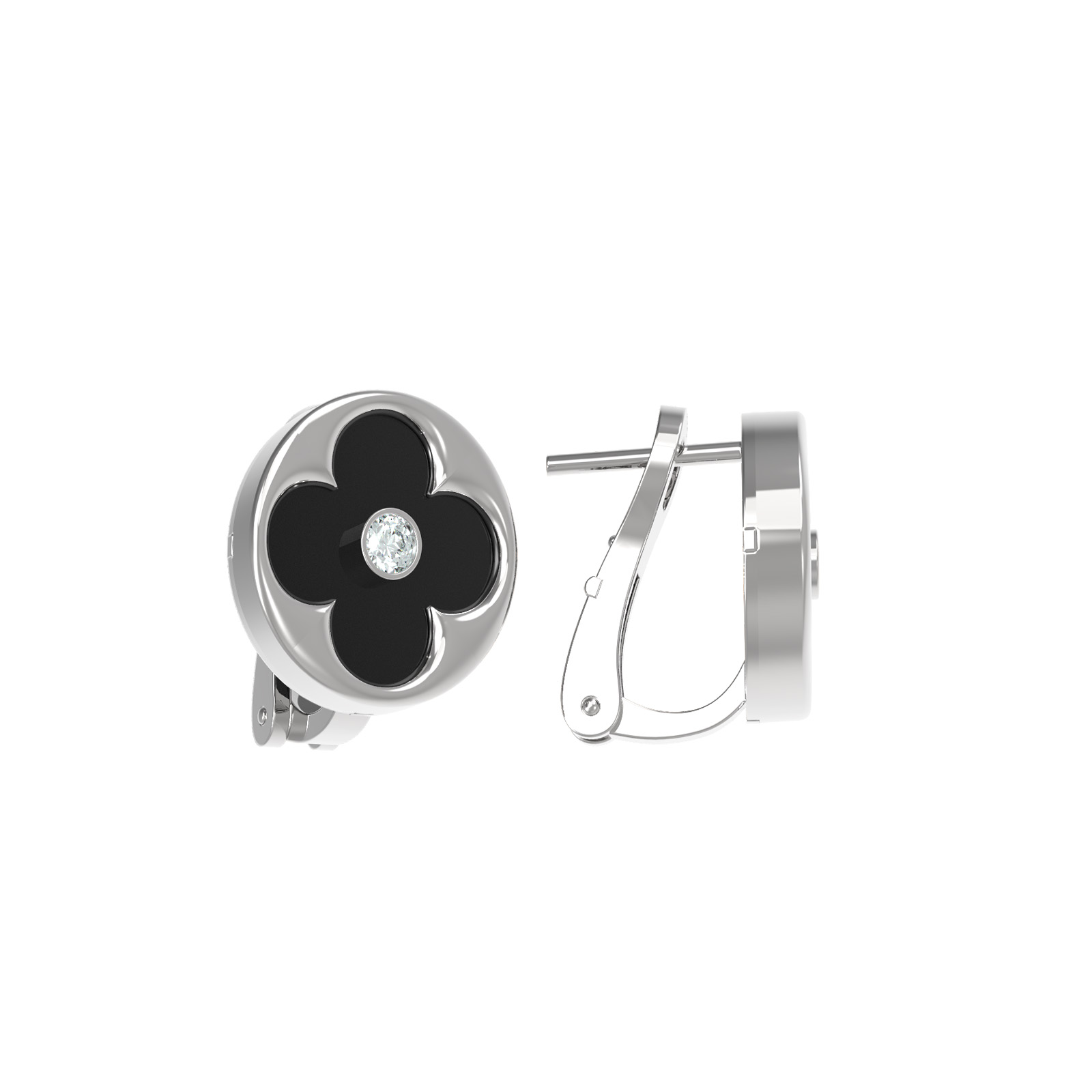 Центральным элементом композиции является выразительный черный оникс круглой формы, дополненный сверкающим белым бриллиантом. Такое сочетание делает серьги по-настоящему универсальными: они станут стильным акцентом как в женском, так и в мужском образе. Всего в изделии использовано 4 вставки, которые создают сбалансированную и притягательную игру света. Геометричный и лаконичный дизайн в виде четырехлистника придает украшению особую статусность.