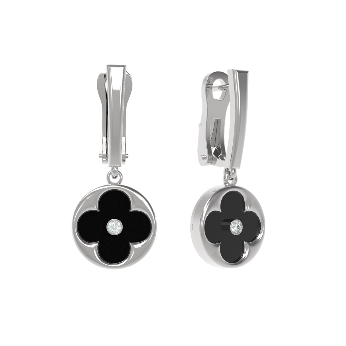 Элегантные серьги из белого золота 585 пробы из коллекции De Luxe — Амальфи — Бриллианты станут безупречным акцентом вашего образа. Дизайн украшения воплощает в себе лаконичность и классическую эстетику, где главным декоративным элементом выступает изящный мотив в форме клевера. Искусное сочетание благородного белого металла с глубоким черным ониксом создает выразительный контраст, подчеркивающий статусность и утонченный вкус владельца.