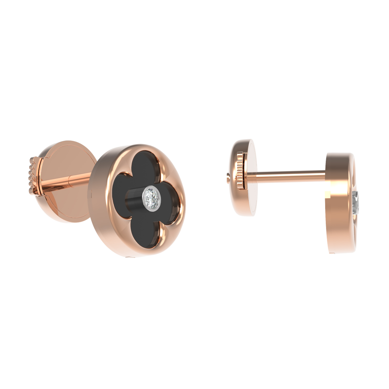 Серьги из красного золота 585 пробы из коллекции De Luxe — Амальфи — Бриллианты представляют собой гармоничное сочетание классической элегантности и актуального дизайна. Центральным элементом украшения является изящный мотив клевера, который придает изделию особое очарование и символизирует удачу. Теплый оттенок красного золота идеально подчеркивает контраст между черным ониксом и сияющим белым бриллиантом.