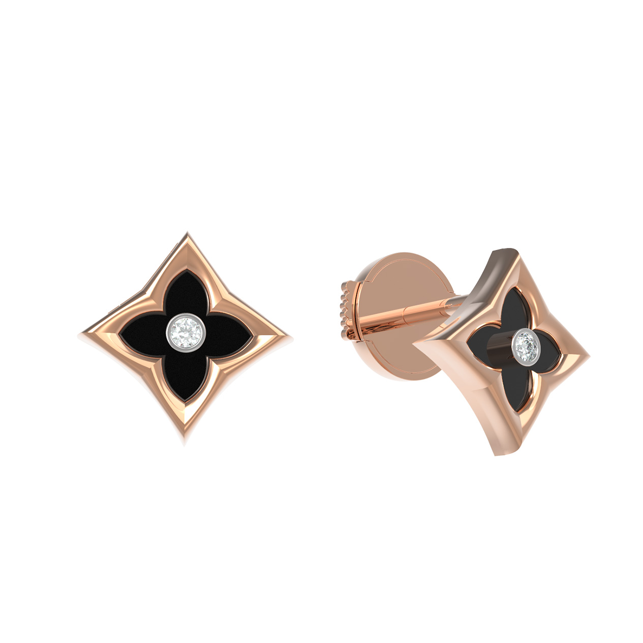 Откройте для себя воплощение элегантности и безупречного стиля с серьгами из коллекции De Luxe — Амальфи — Бриллианты. Это изысканное украшение выполнено из красного золота 585 пробы, которое подчеркивает теплоту и благородство металла. Дизайн изделий вдохновлен классическим образом клевера, придавая им особое очарование и символический смысл. Лаконичная форма подчеркнута контрастным сочетанием материалов: глубокий черный оникс в форме ромба гармонично дополняется ярким сиянием белого бриллианта круглой формы в центре композиции.