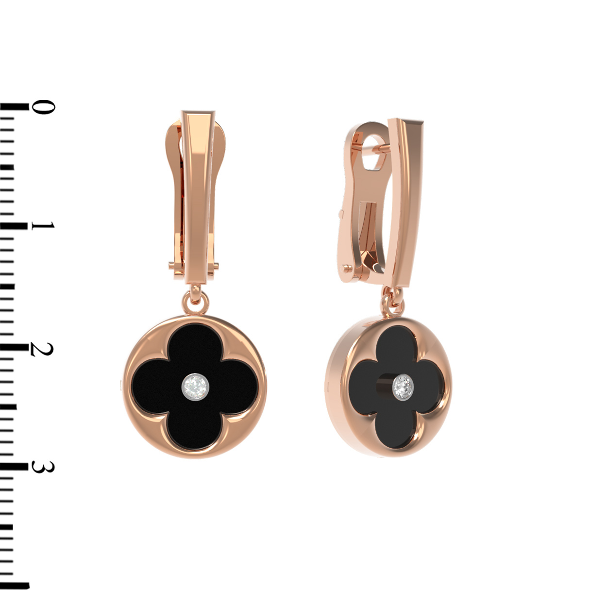 Данная модель продумана до мелочей: надежная конструкция обеспечивает комфорт при повседневном ношении, а эстетика украшения позволяет использовать его как самостоятельный аксессуар или в сочетании с другими изделиями. Эти серьги из красного золота с бриллиантами и ониксом — прекрасный выбор для ценителей ювелирных изделий, которые гармонично вписываются в любые комплекты, подчеркивая статус и индивидуальность владельца. Добавьте в свою коллекцию аксессуар, который никогда не выйдет из моды.