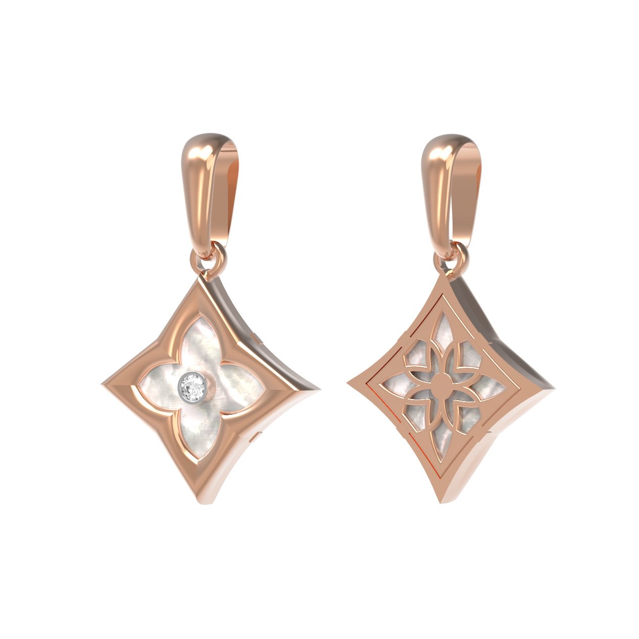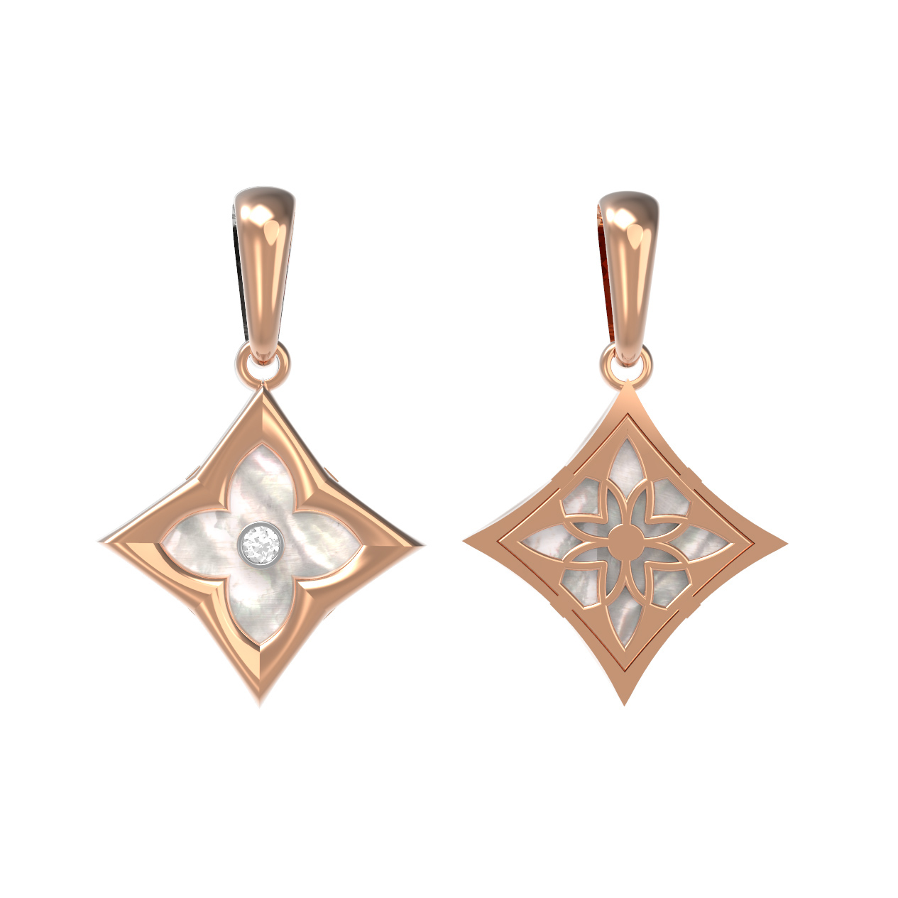 Благородный оттенок красного золота идеально сочетается с белым сиянием драгоценного камня и мягким переливом перламутра. Подвеска универсальна и подходит как для женщин, так и для мужчин, предпочитающих премиальные ювелирные изделия с лаконичным, но глубоким смыслом. Благодаря своей универсальности, украшение гармонично впишется в повседневный или вечерний гардероб.