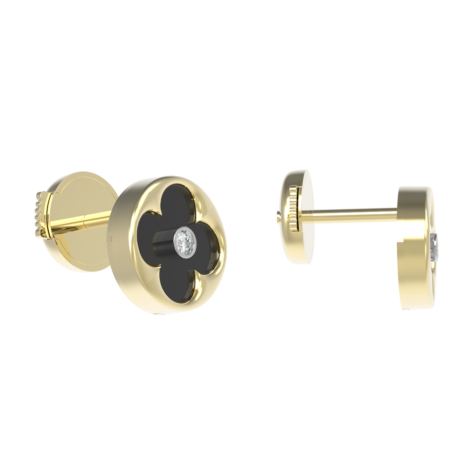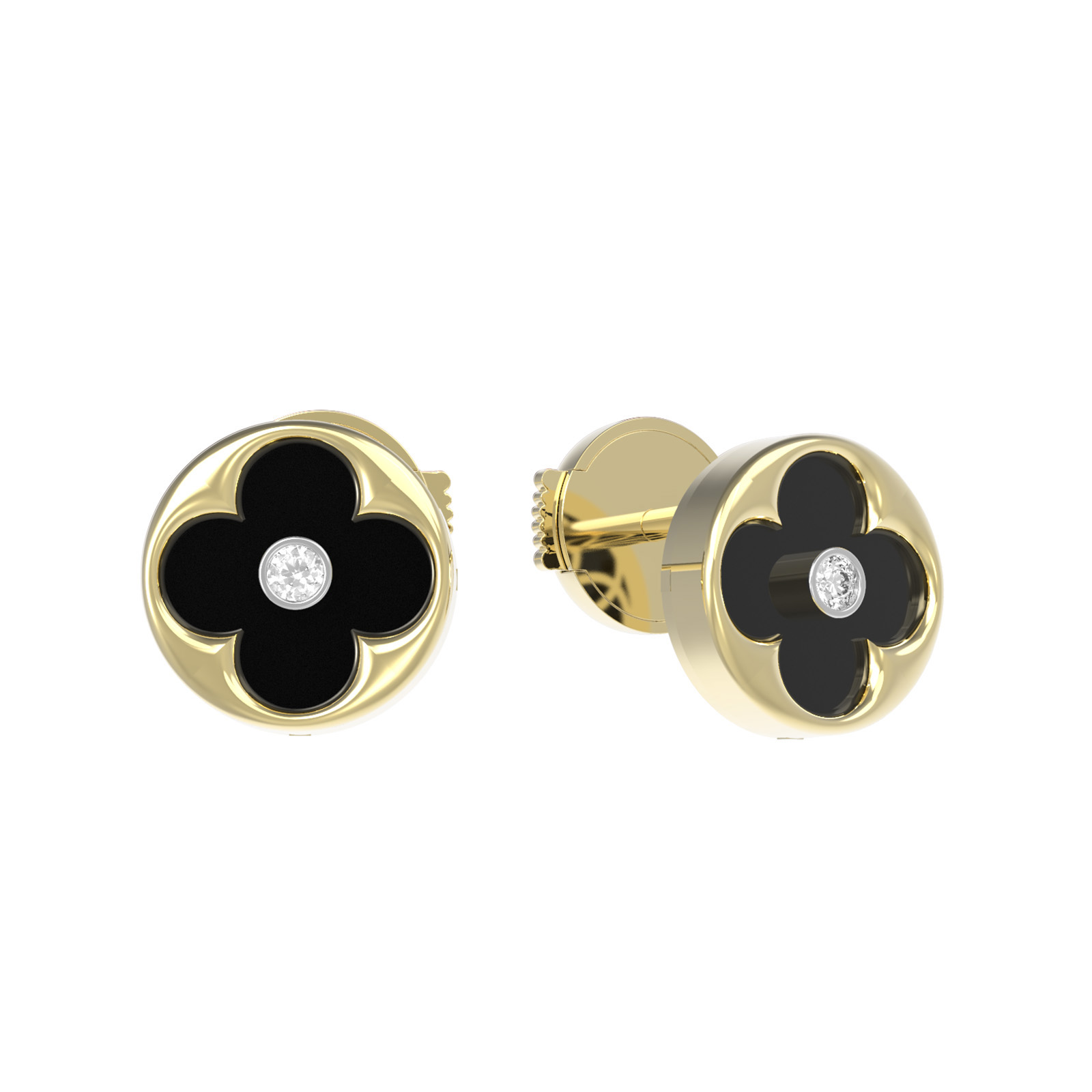 Серьги из лимонного золота 585 пробы из коллекции De Luxe — Амальфи — Бриллианты воплощают собой сочетание безупречного стиля и лаконичной роскоши. Дизайн изделия выполнен в форме клевера, который всегда остается актуальным и узнаваемым символом элегантности. Теплый оттенок лимонного золота гармонично дополняют вставки контрастных цветов: глубокий черный оникс в сочетании с сияющим белым бриллиантом создают выразительный акцент.
