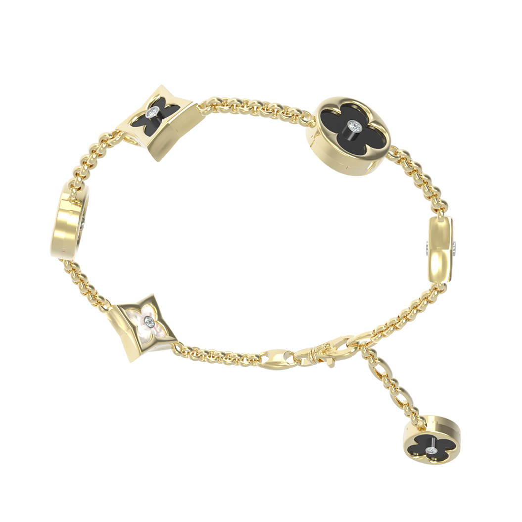 Браслет из лимонного золота c бриллиантами, ониксом и перламутром
