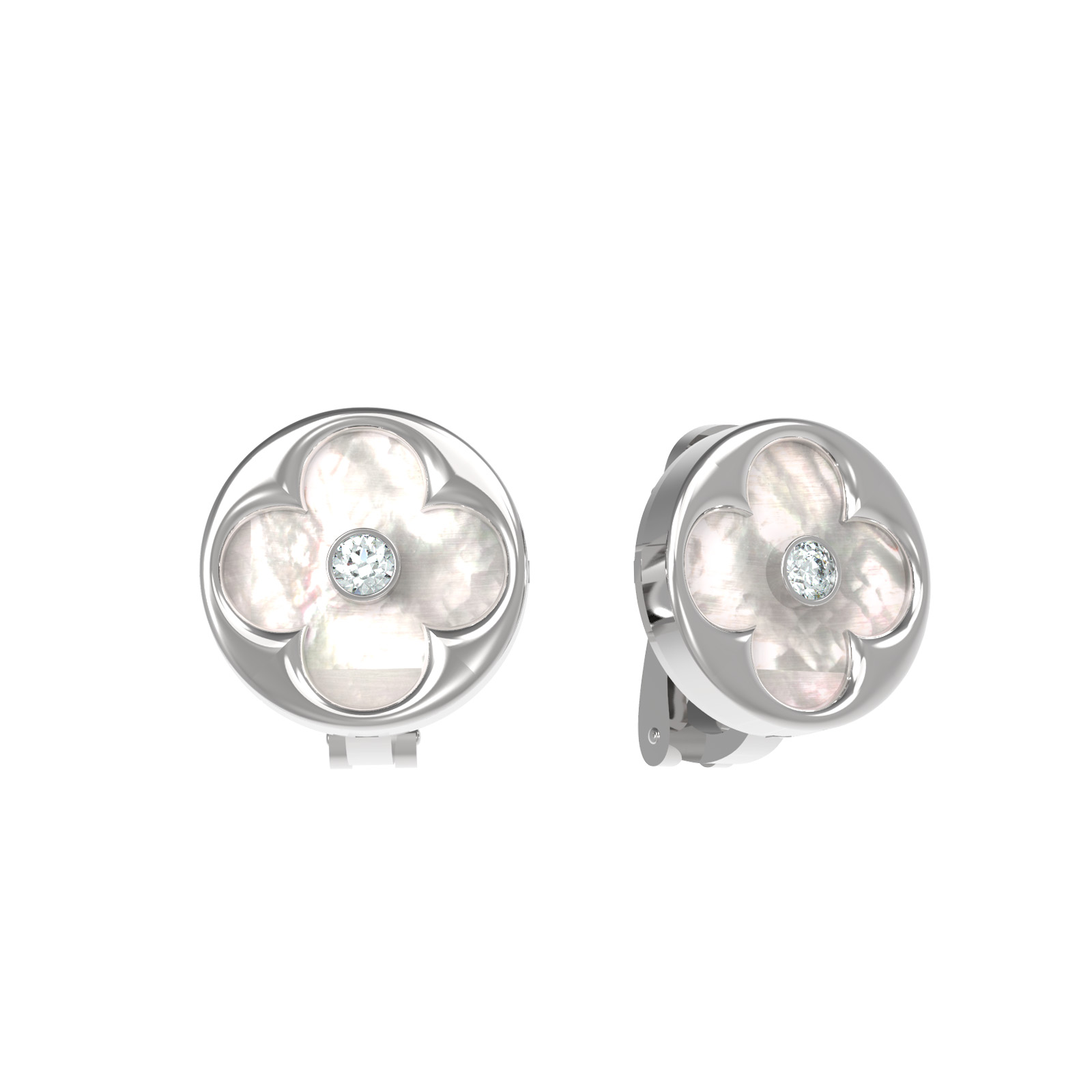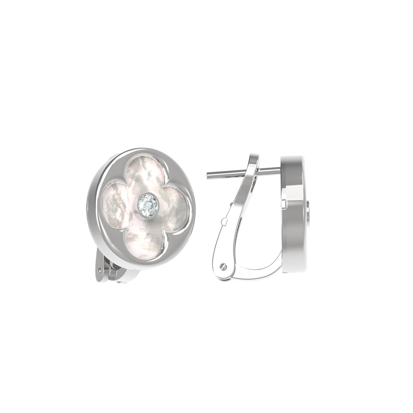 Серьги из белого золота 585 пробы из коллекции De Luxe — Амальфи — Бриллианты — это воплощение утонченности и лаконичного дизайна. Ювелирное изделие выполнено в форме клевера, что придает украшению особое очарование и символический смысл. Благородный блеск металла гармонично сочетается с мягким сиянием вставок из натурального перламутра. Центральный акцент композиции — круглый бриллиант, который придает серьгам яркость и выразительность. В изделии использовано 2 вставки, создающих сбалансированный и притягательный образ.