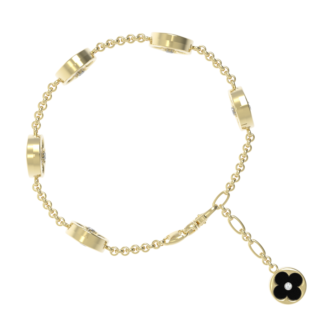 Браслет из лимонного золота c бриллиантами, ониксом и перламутром