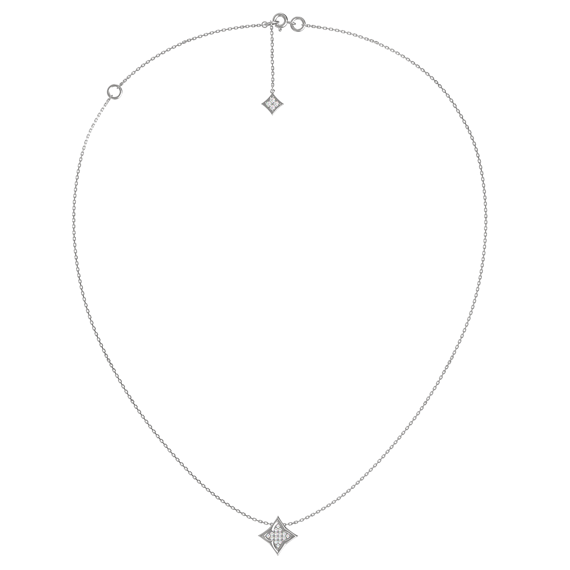 Украшение дополнено 20 бриллиантами круглой огранки, которые притягивают взгляд своим холодным белым цветом и чистотой. Мелкие камни гармонично вписаны в общую композицию, превращая колье в акцентный аксессуар для повседневного или вечернего выхода. Универсальный стиль изделия позволяет носить его как женщинам, так и мужчинам, подчеркивая индивидуальность и вкус своего обладателя.