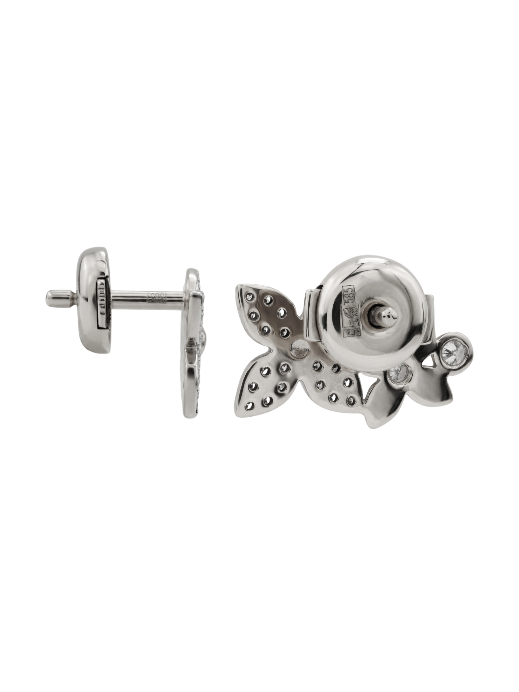 Украшение инкрустировано 52 бриллиантами круглой огранки. Качественные вставки белого цвета обладают исключительным блеском, который раскрывается при каждом повороте головы. Ювелирная композиция в форме изящного клевера выглядит лаконично и при этом роскошно, что позволяет носить серьги как с деловым костюмом, так и с вечерним платьем. Это универсальный аксессуар, который подойдет как для женщин, так и для мужчин, ценящих качественные драгоценности.