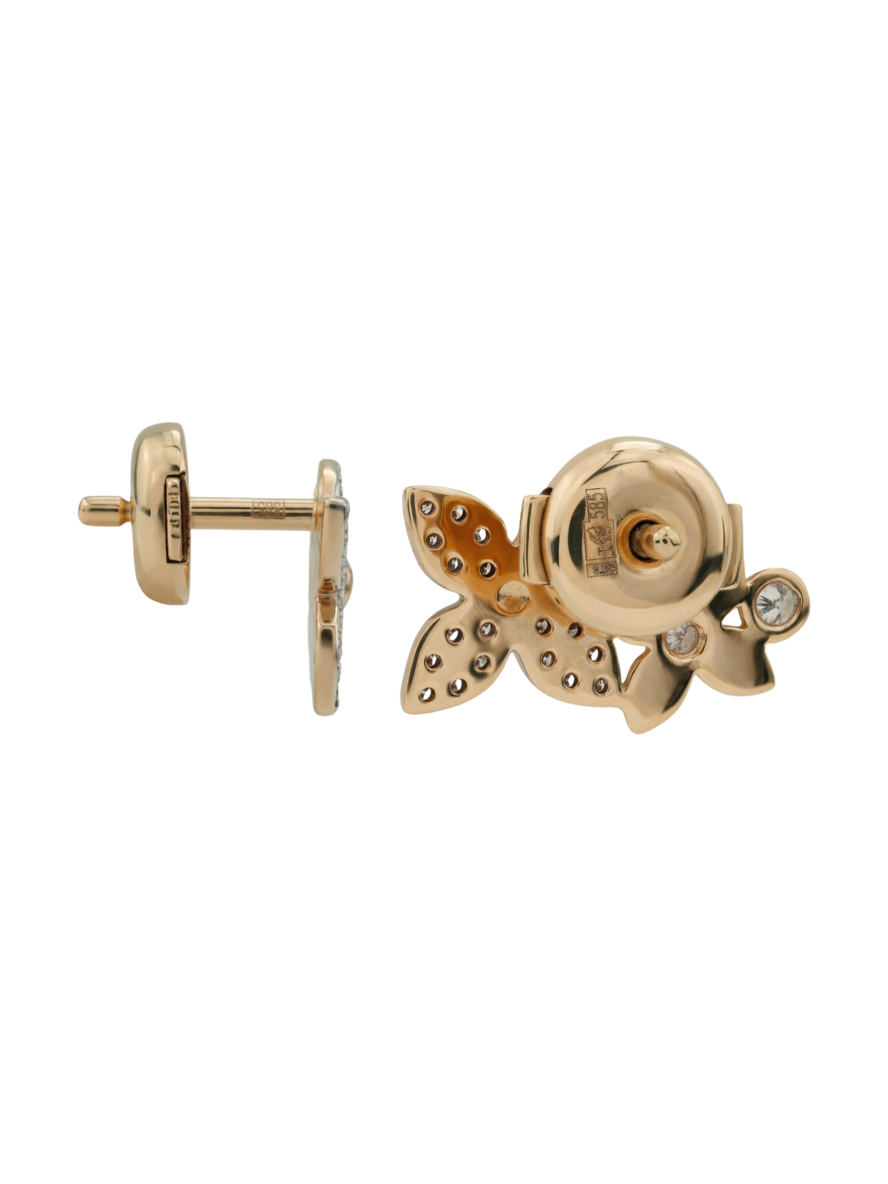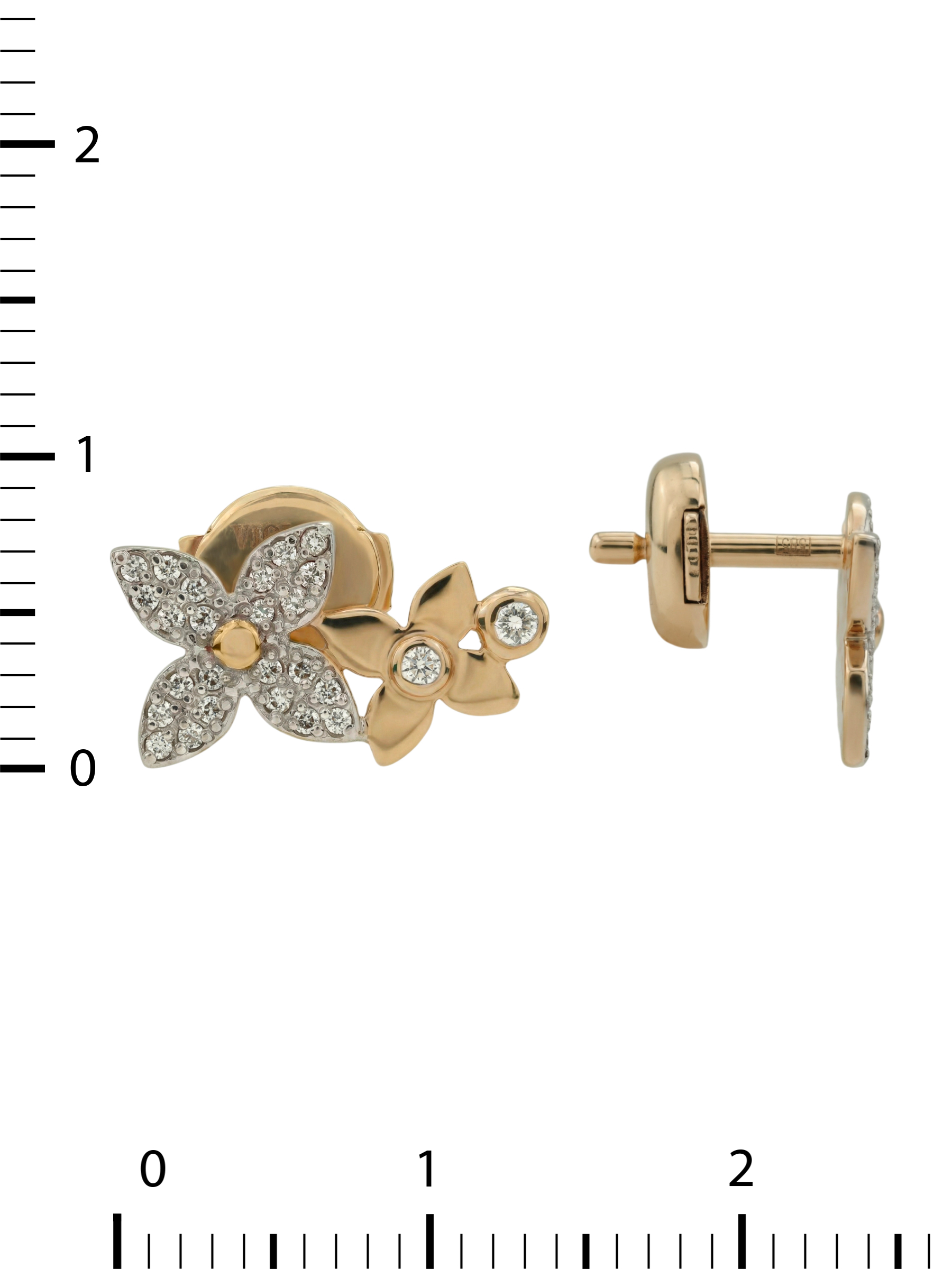 Центральным элементом композиции стали 52 бриллианта, каждый из которых имеет классическую форму вставки круг. Сияние драгоценных камней белого цвета гармонично сочетается с теплым блеском красного золота, создавая эффектный контраст и игру света при каждом движении. Общее количество вставок и продуманный дизайн превращают эти серьги в роскошный акцент для любого образа, будь то повседневный выход или торжественное событие.