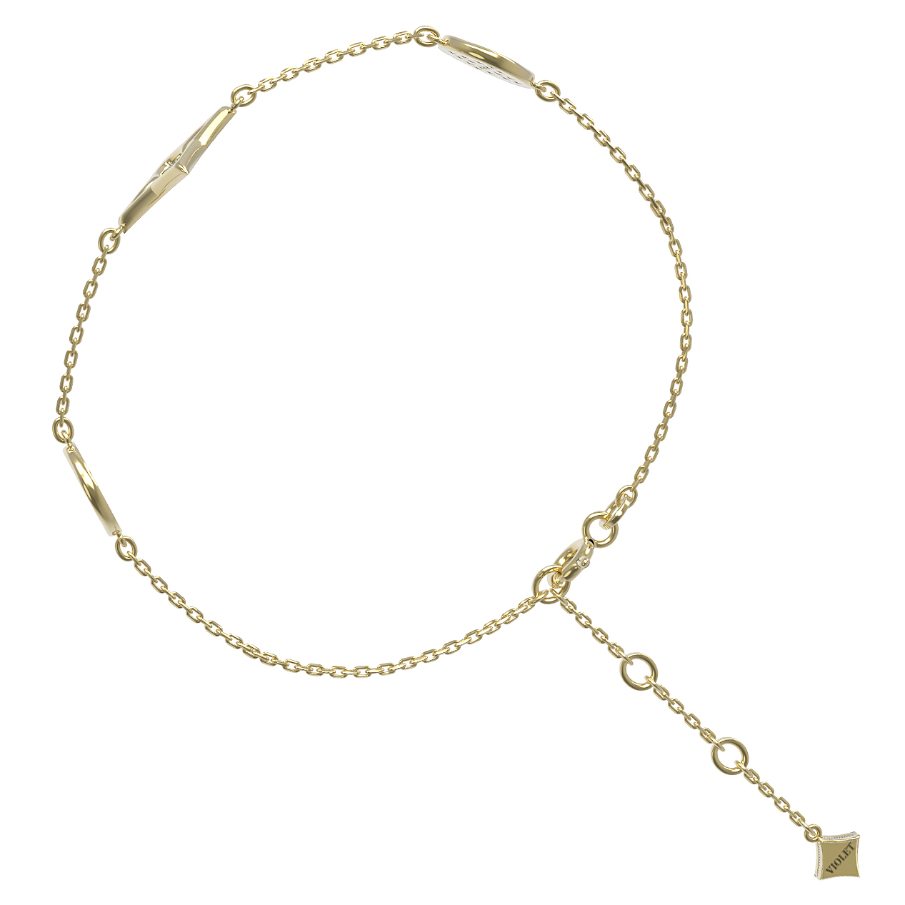 Браслет отличается продуманной геометрией: сочетание тонкой цепи и выразительных декоративных элементов создает акцент на запястье, притягивая взгляды. Ювелирное изделие органично вписывается в комплекты украшений, становясь завершающим штрихом вашего ансамбля. Выбирая этот браслет, вы отдаете предпочтение качеству и вневременному дизайну, который остается актуальным в любой ситуации.