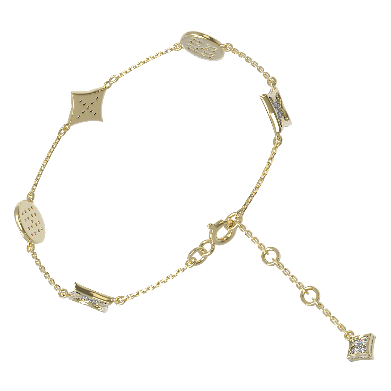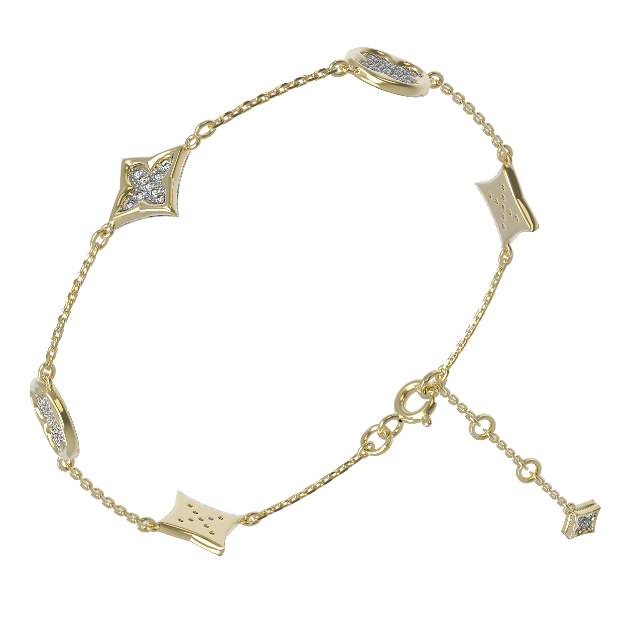 Центральным элементом композиции выступают 65 бриллиантов круглой огранки. Белый цвет вставок эффектно контрастирует с теплым тоном лимонного золота, создавая игру света при каждом вашем движении. Деликатная цепочка делает украшение невесомым, позволяя ему плавно огибать запястье. Это универсальное решение, которое подойдет как для женщин, так и для мужчин, предпочитающих лаконичные и статусные аксессуары.